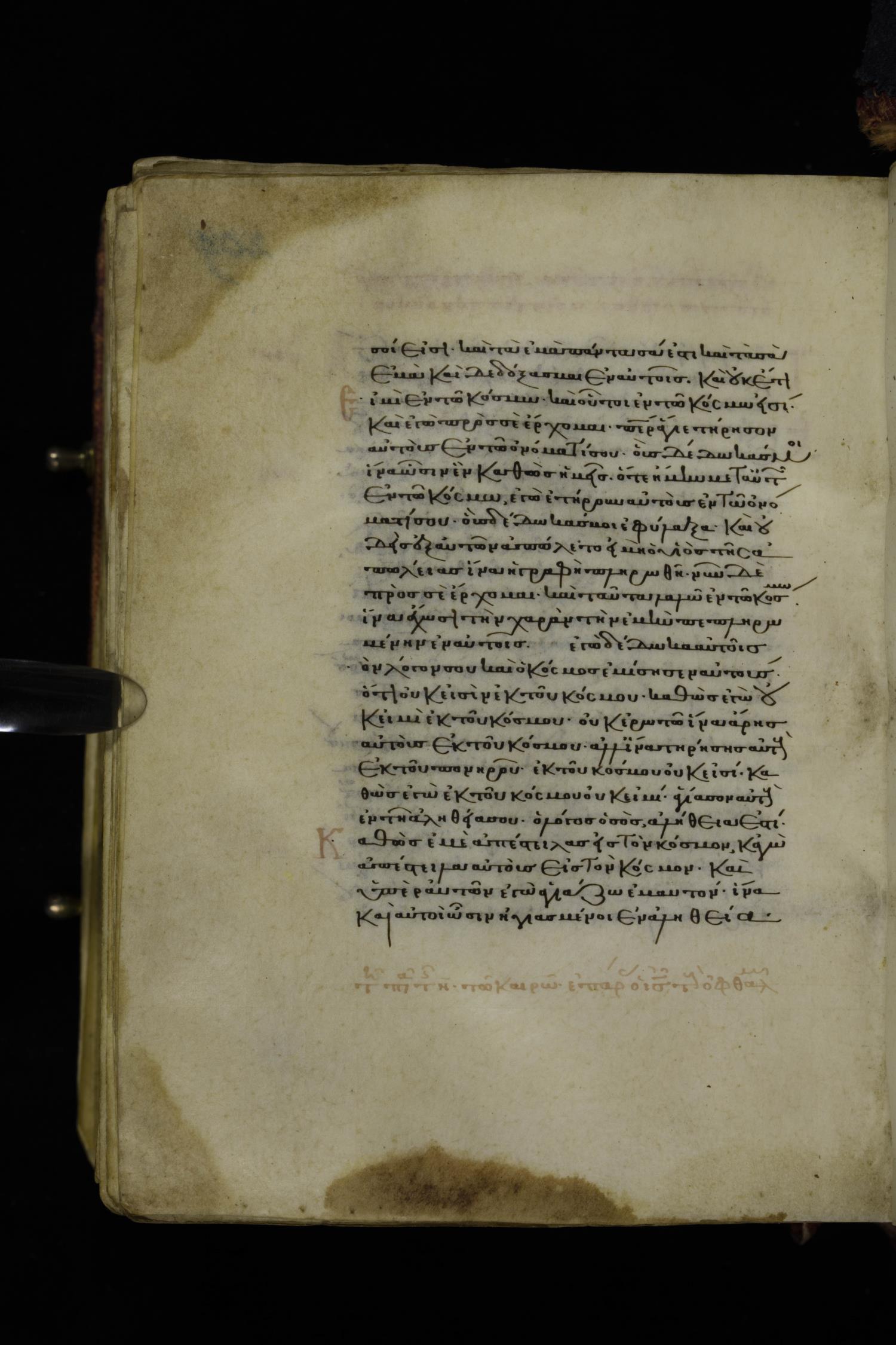 Thirteenth century minuscule of the Gospels on parchment; 223 leaves, 1 column, 24 lines per column. Images were taken at the National Library of Greece in Athens.