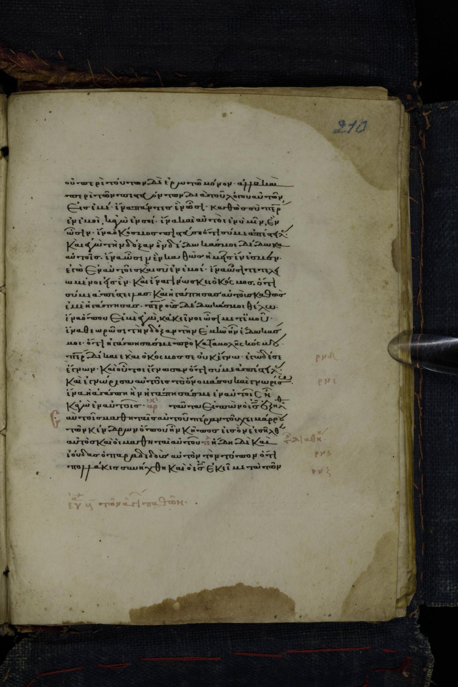 Thirteenth century minuscule of the Gospels on parchment; 223 leaves, 1 column, 24 lines per column. Images were taken at the National Library of Greece in Athens.