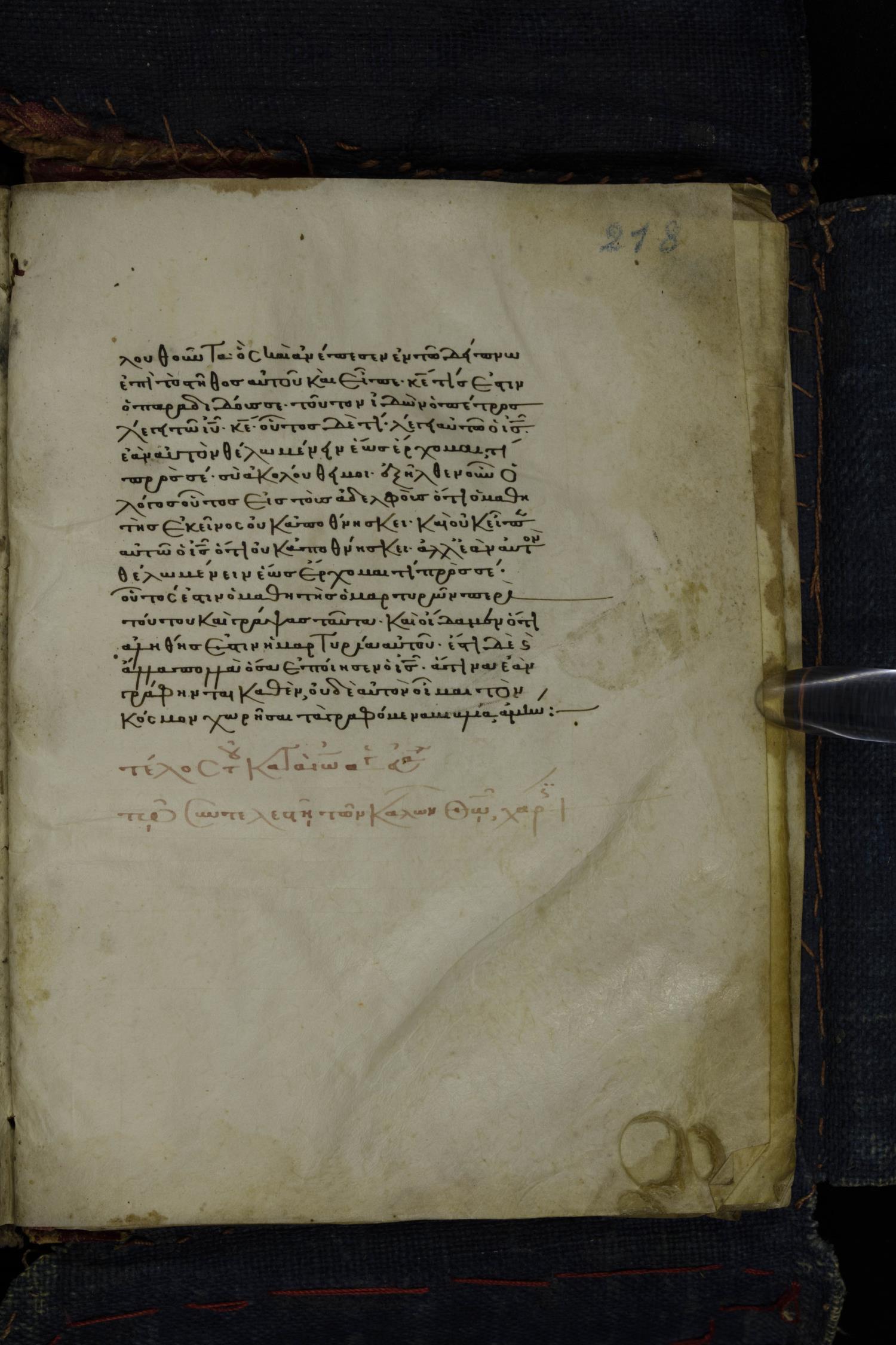 Thirteenth century minuscule of the Gospels on parchment; 223 leaves, 1 column, 24 lines per column. Images were taken at the National Library of Greece in Athens.