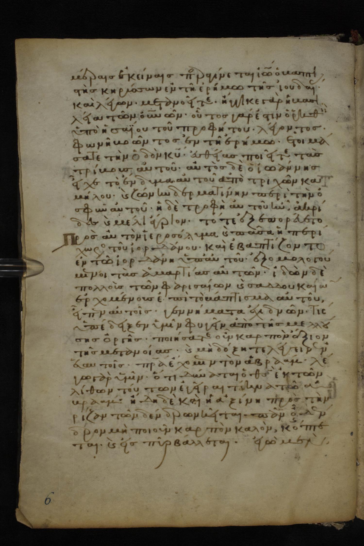 Twelfth century minuscule of the Gospels on parchment; 185 leaves, 1 column, 29 lines per column. Images were taken at the National Library of Greece in Athens.