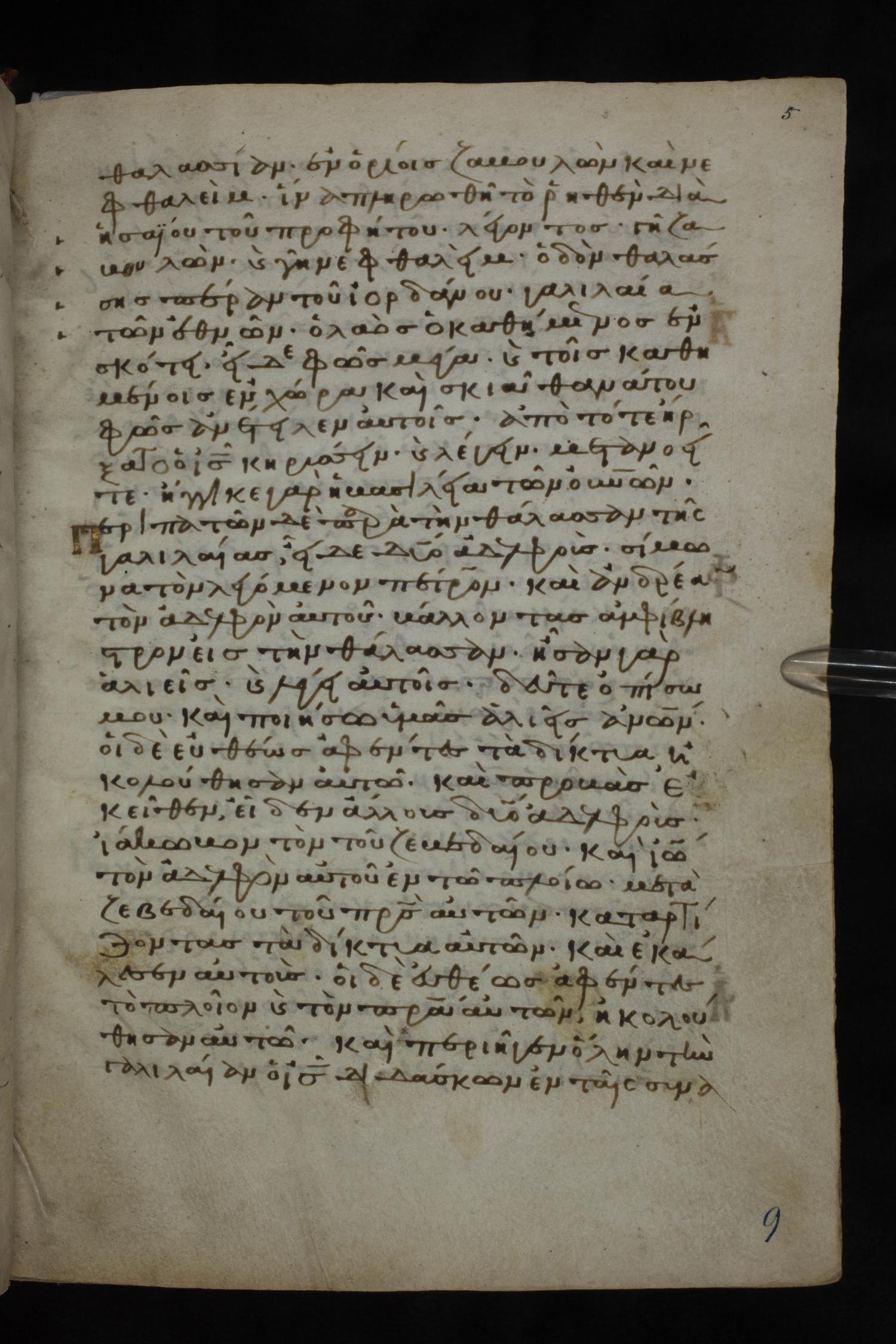 Twelfth century minuscule of the Gospels on parchment; 185 leaves, 1 column, 29 lines per column. Images were taken at the National Library of Greece in Athens.