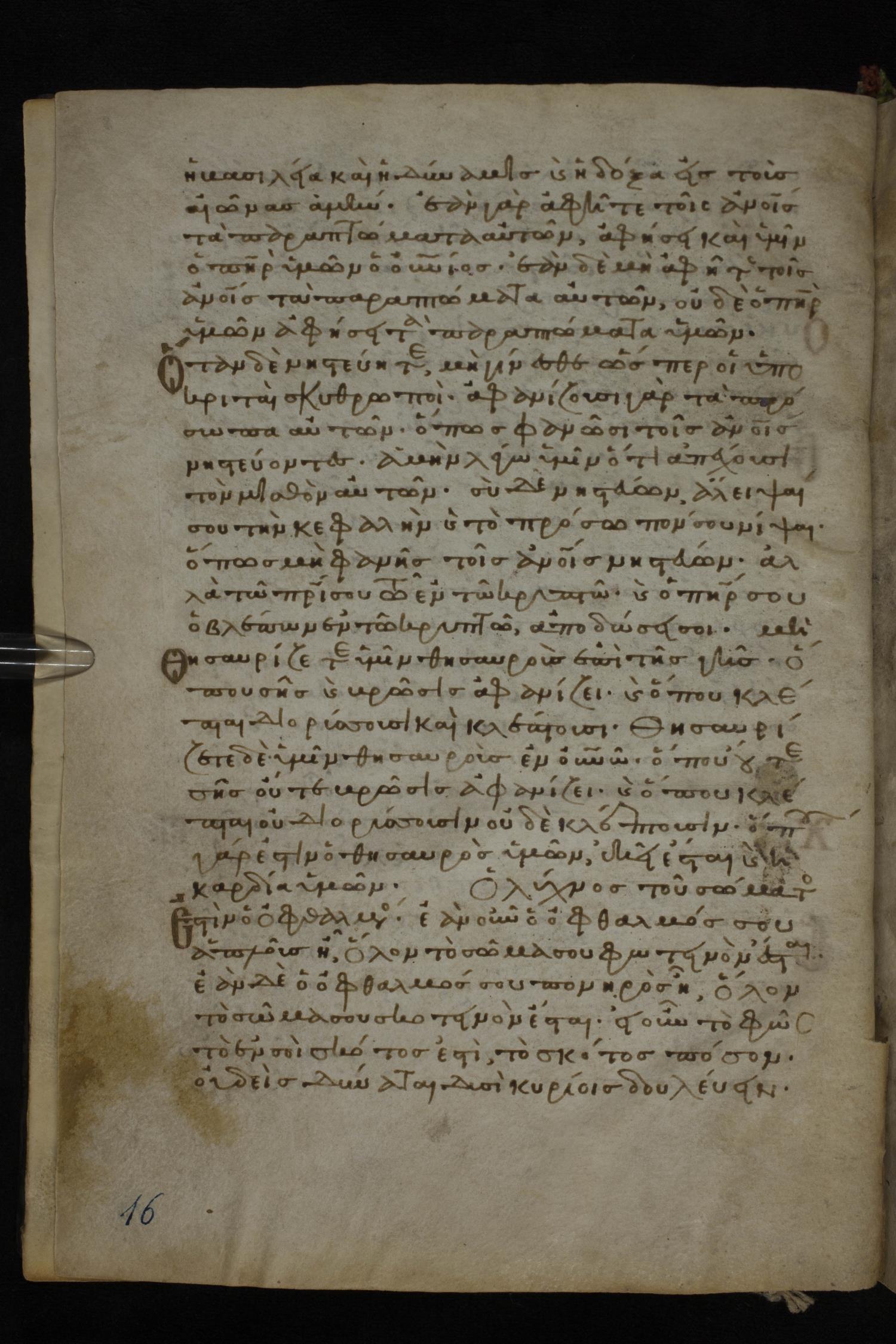 Twelfth century minuscule of the Gospels on parchment; 185 leaves, 1 column, 29 lines per column. Images were taken at the National Library of Greece in Athens.