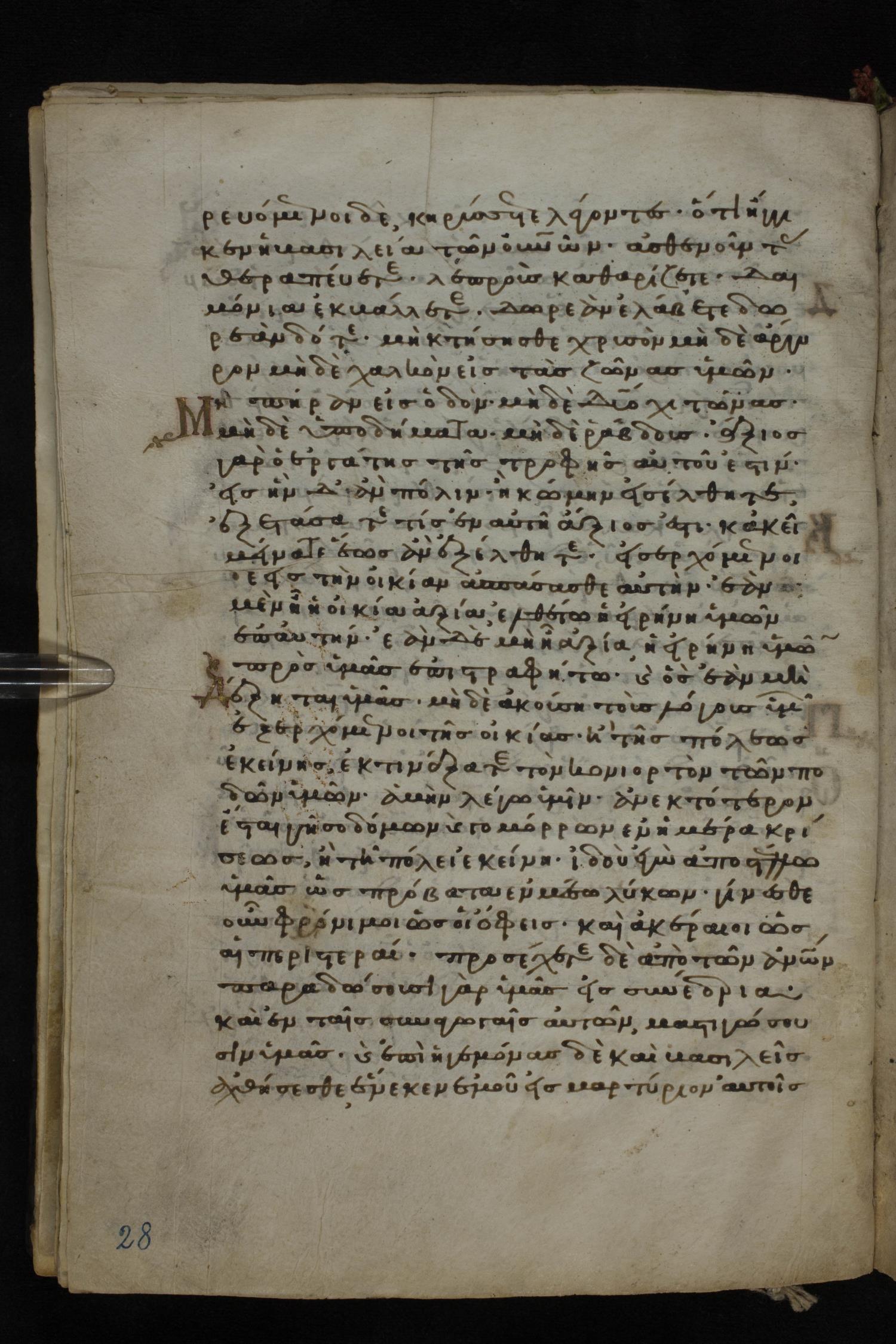 Twelfth century minuscule of the Gospels on parchment; 185 leaves, 1 column, 29 lines per column. Images were taken at the National Library of Greece in Athens.