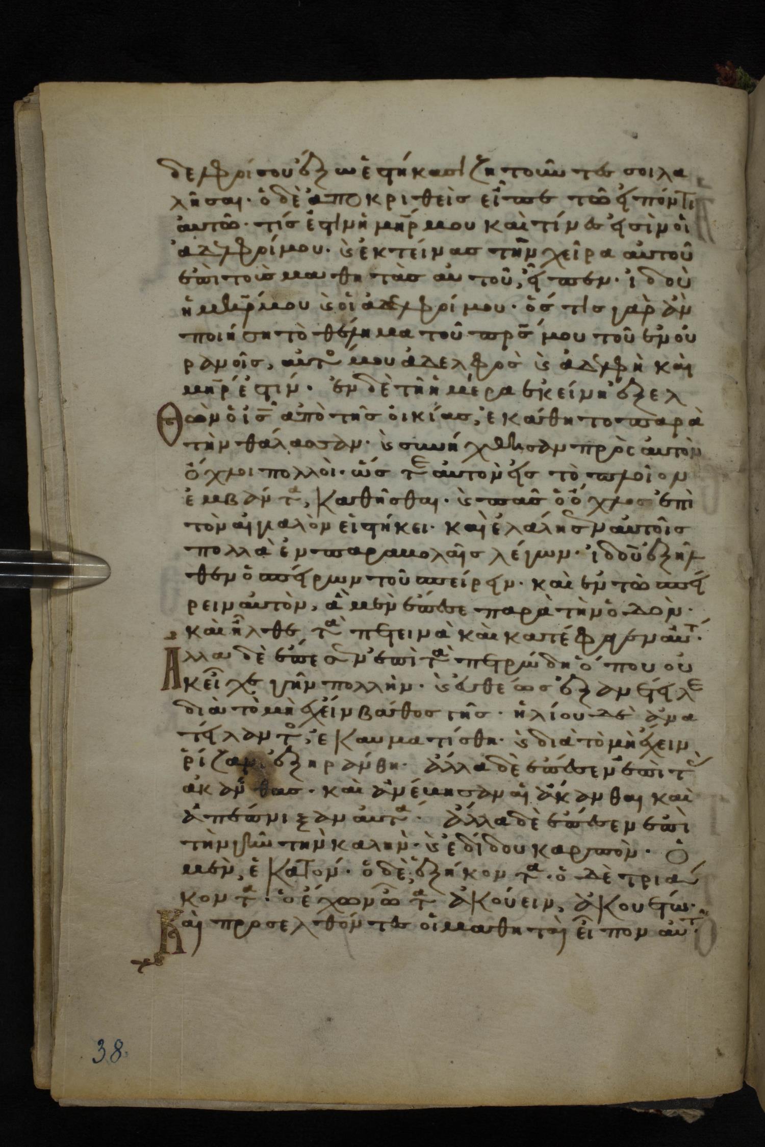 Twelfth century minuscule of the Gospels on parchment; 185 leaves, 1 column, 29 lines per column. Images were taken at the National Library of Greece in Athens.
