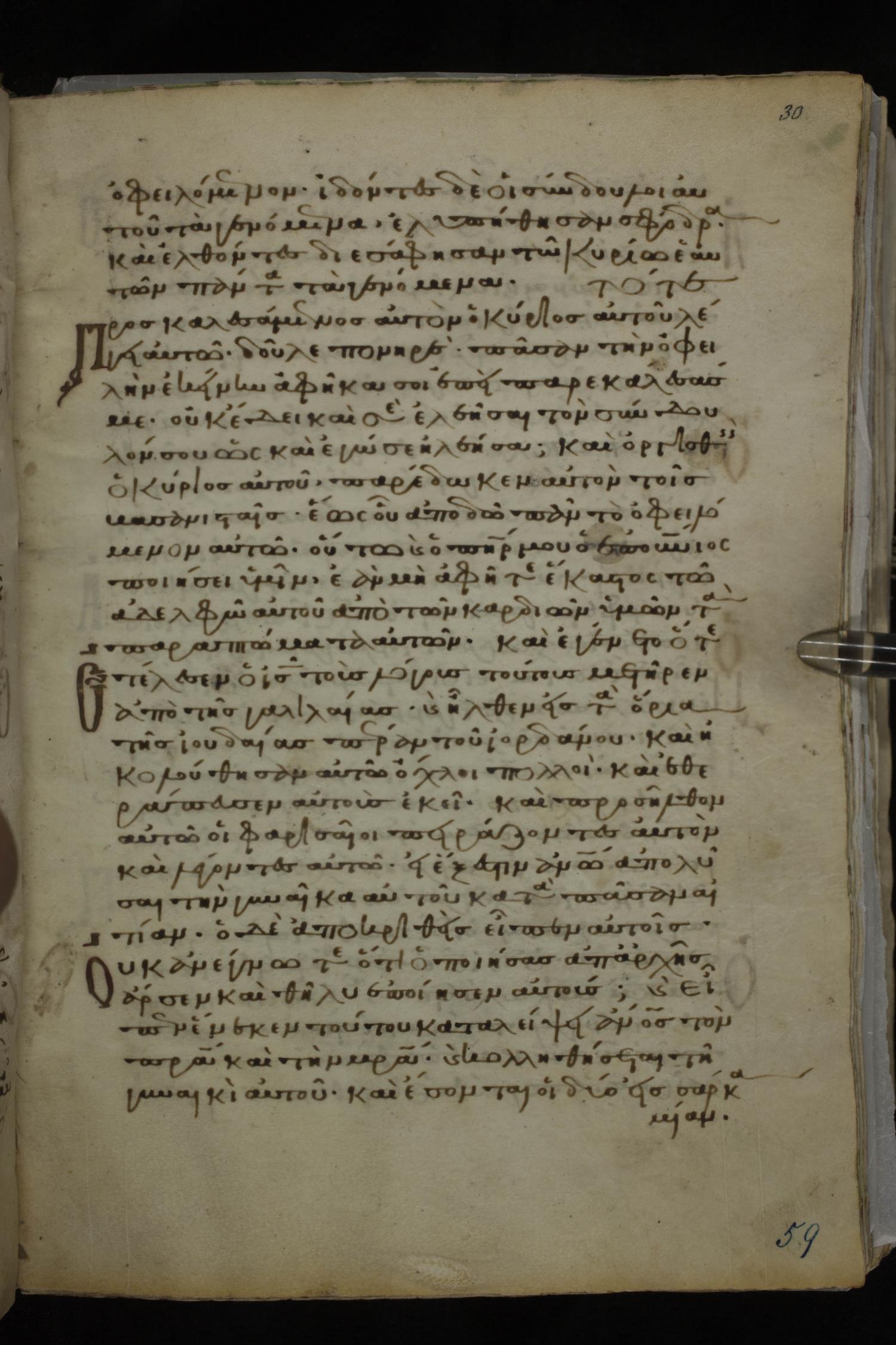 Twelfth century minuscule of the Gospels on parchment; 185 leaves, 1 column, 29 lines per column. Images were taken at the National Library of Greece in Athens.