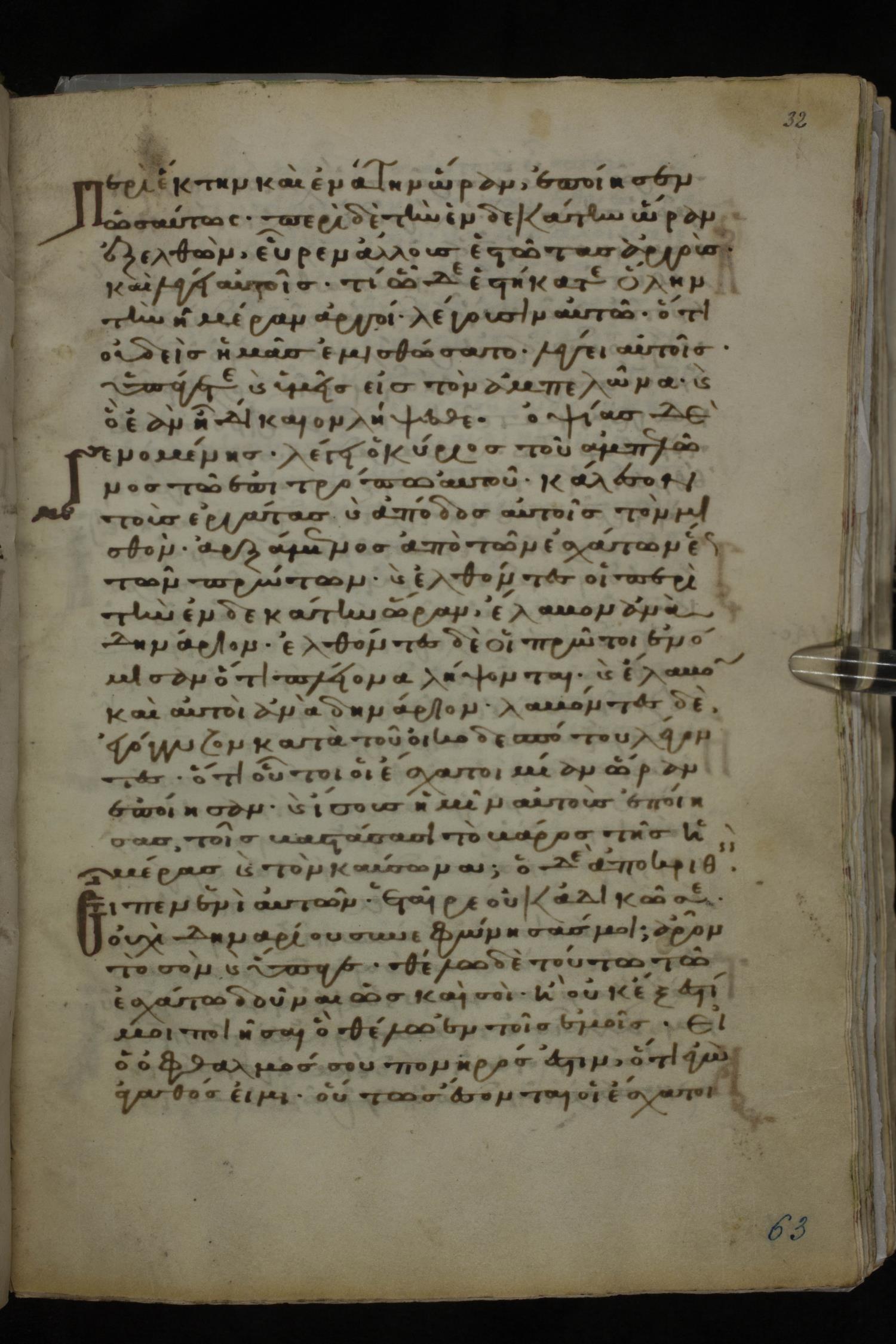 Twelfth century minuscule of the Gospels on parchment; 185 leaves, 1 column, 29 lines per column. Images were taken at the National Library of Greece in Athens.