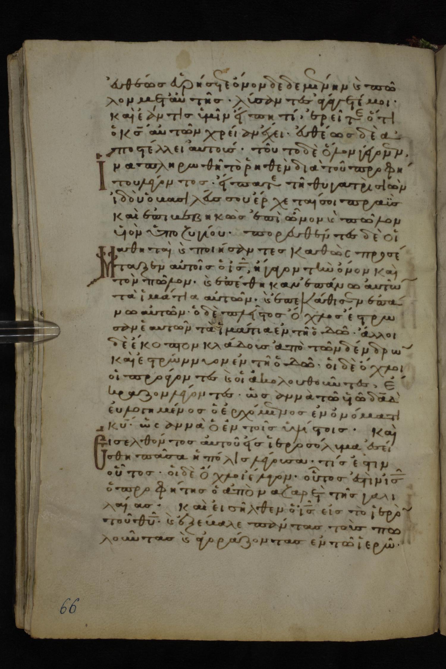 Twelfth century minuscule of the Gospels on parchment; 185 leaves, 1 column, 29 lines per column. Images were taken at the National Library of Greece in Athens.