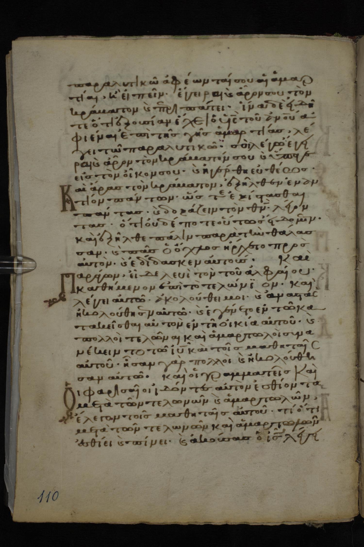 Twelfth century minuscule of the Gospels on parchment; 185 leaves, 1 column, 29 lines per column. Images were taken at the National Library of Greece in Athens.