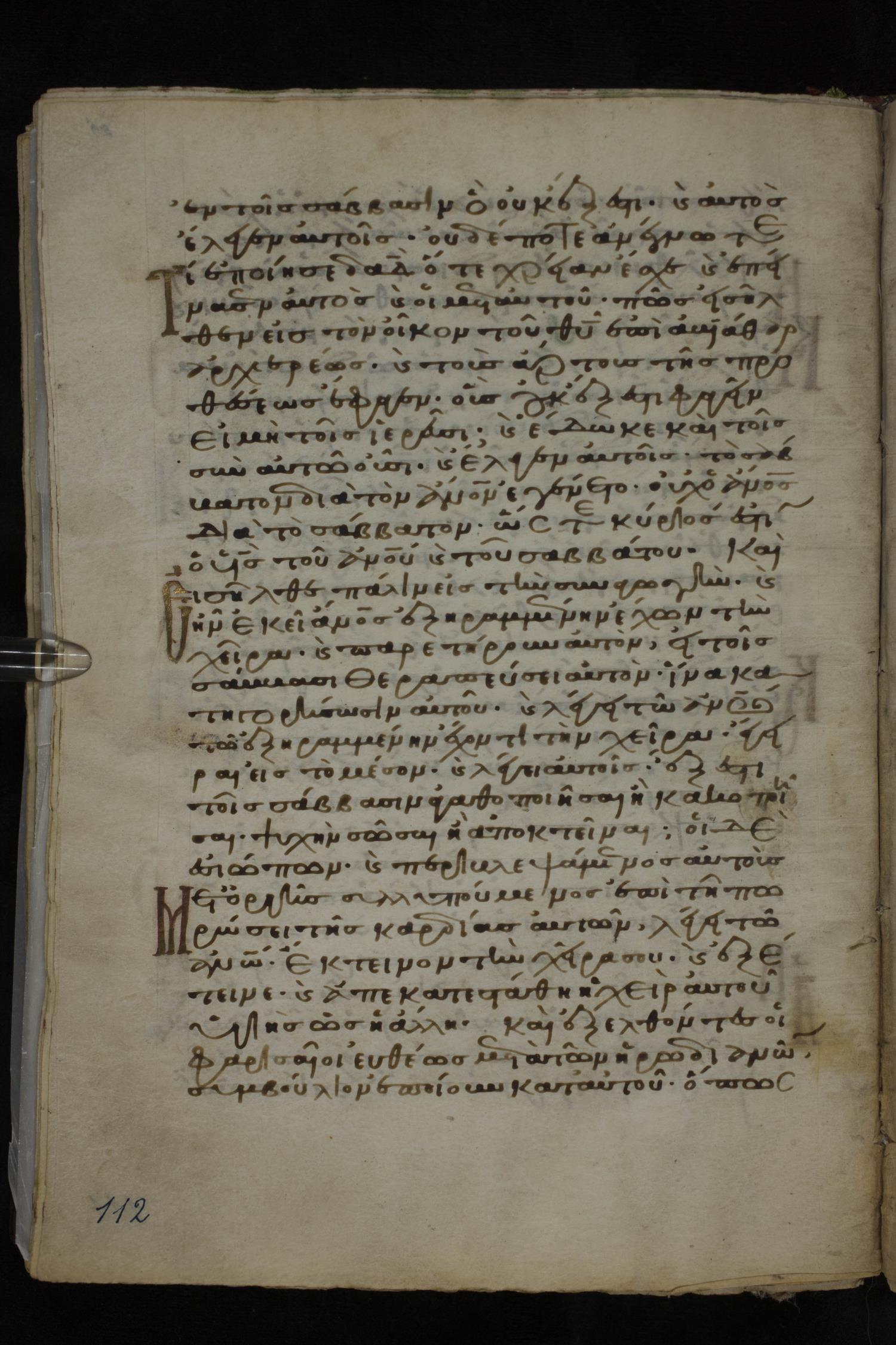 Twelfth century minuscule of the Gospels on parchment; 185 leaves, 1 column, 29 lines per column. Images were taken at the National Library of Greece in Athens.