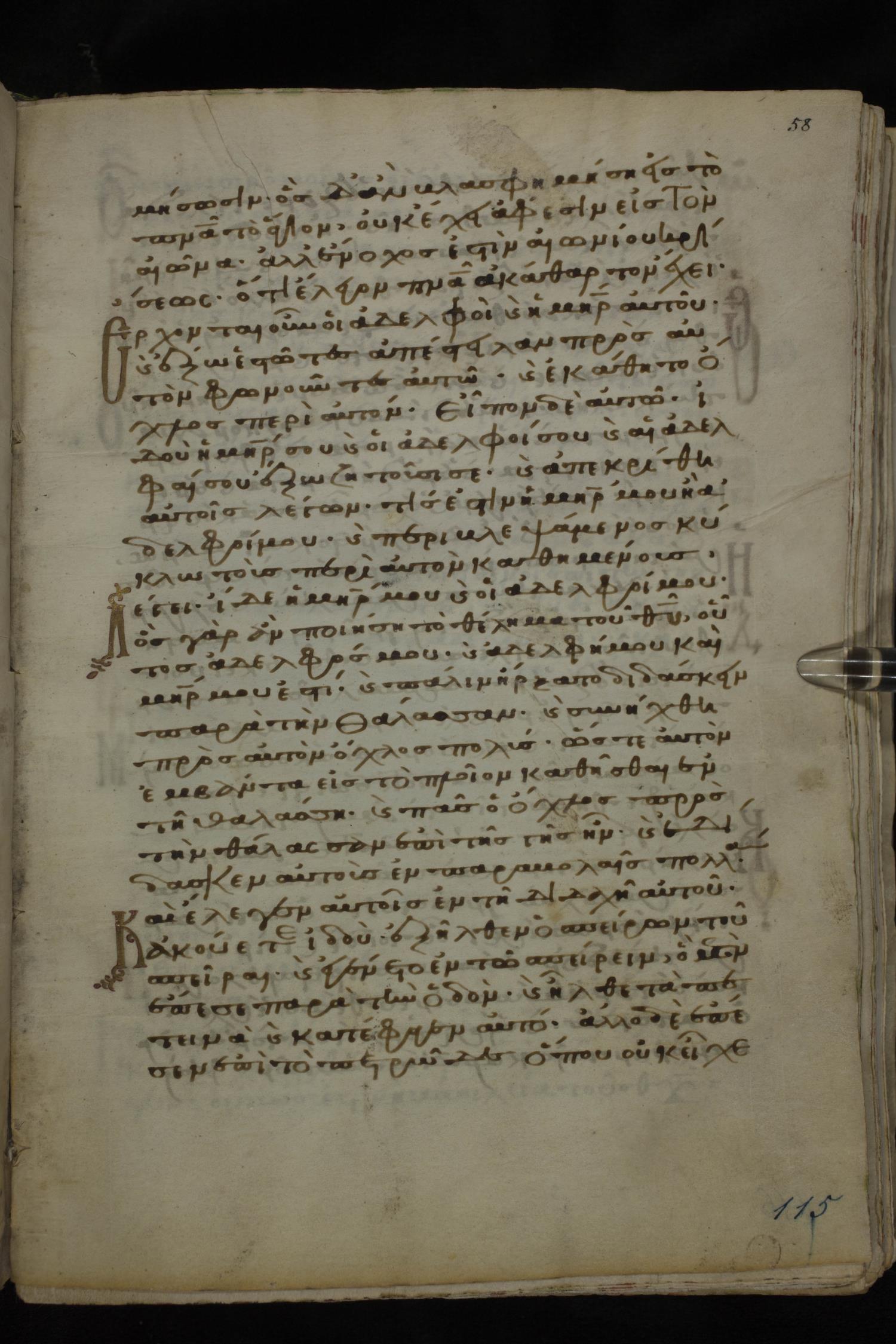 Twelfth century minuscule of the Gospels on parchment; 185 leaves, 1 column, 29 lines per column. Images were taken at the National Library of Greece in Athens.