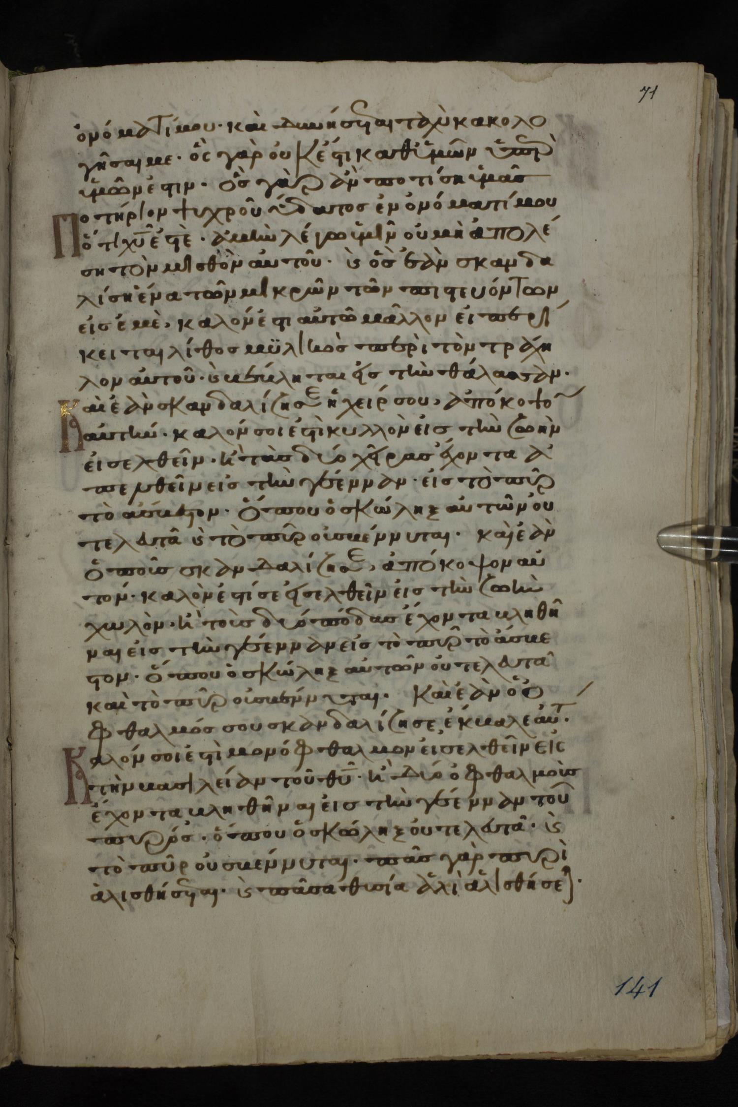 Twelfth century minuscule of the Gospels on parchment; 185 leaves, 1 column, 29 lines per column. Images were taken at the National Library of Greece in Athens.