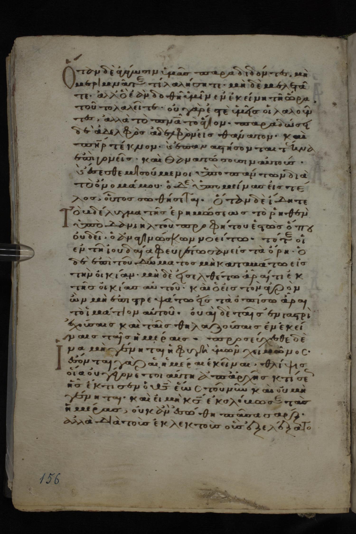 Twelfth century minuscule of the Gospels on parchment; 185 leaves, 1 column, 29 lines per column. Images were taken at the National Library of Greece in Athens.