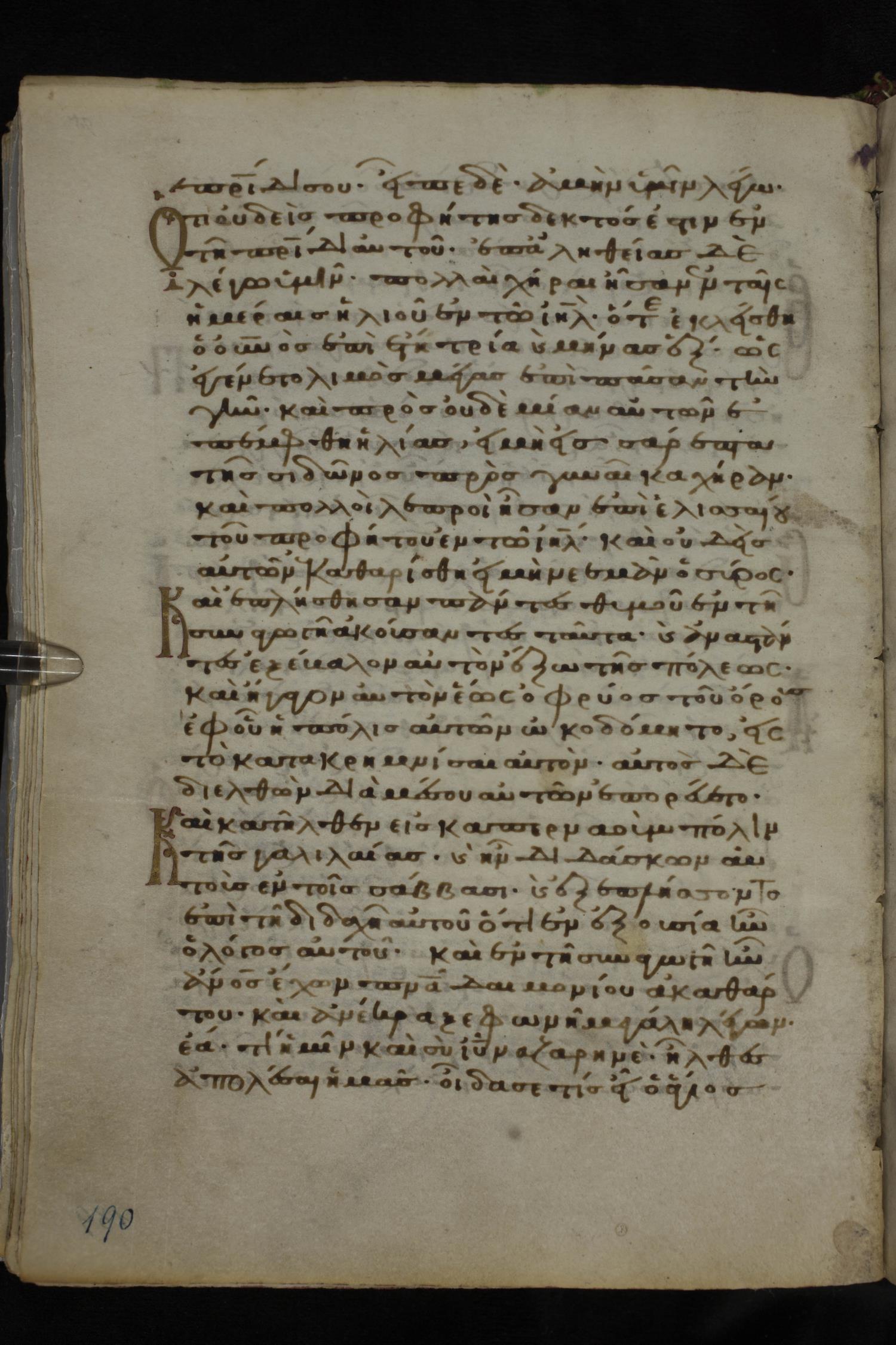 Twelfth century minuscule of the Gospels on parchment; 185 leaves, 1 column, 29 lines per column. Images were taken at the National Library of Greece in Athens.