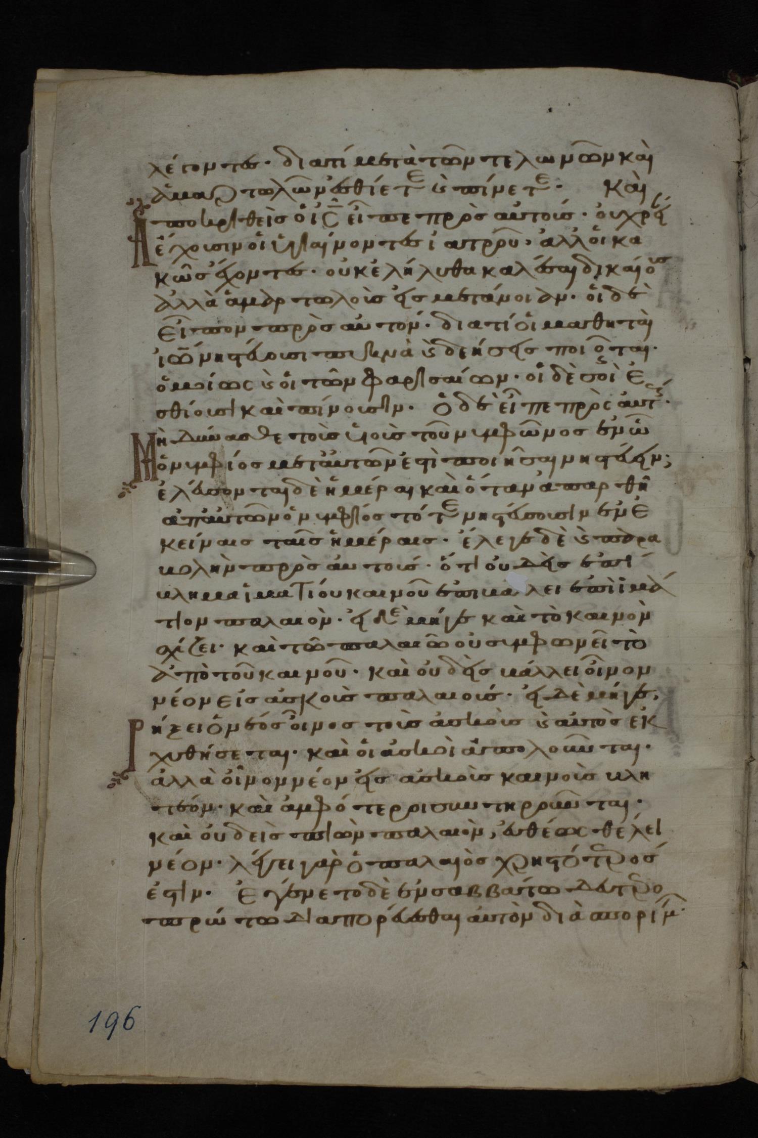 Twelfth century minuscule of the Gospels on parchment; 185 leaves, 1 column, 29 lines per column. Images were taken at the National Library of Greece in Athens.