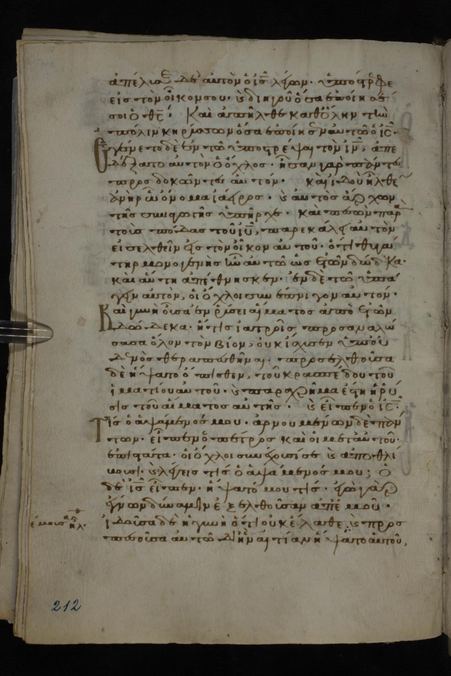 Twelfth century minuscule of the Gospels on parchment; 185 leaves, 1 column, 29 lines per column. Images were taken at the National Library of Greece in Athens.