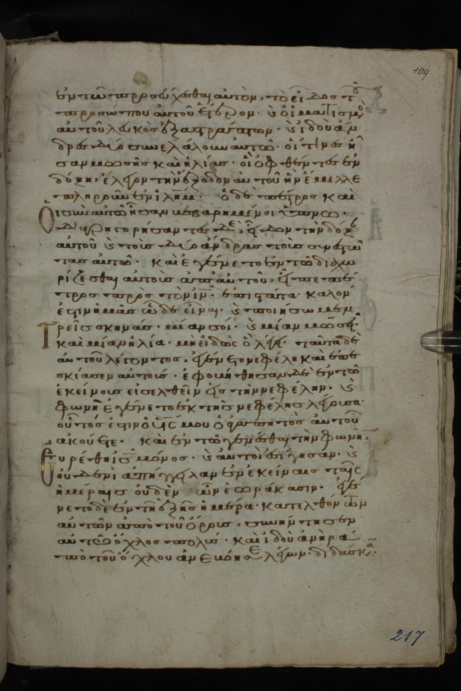 Twelfth century minuscule of the Gospels on parchment; 185 leaves, 1 column, 29 lines per column. Images were taken at the National Library of Greece in Athens.