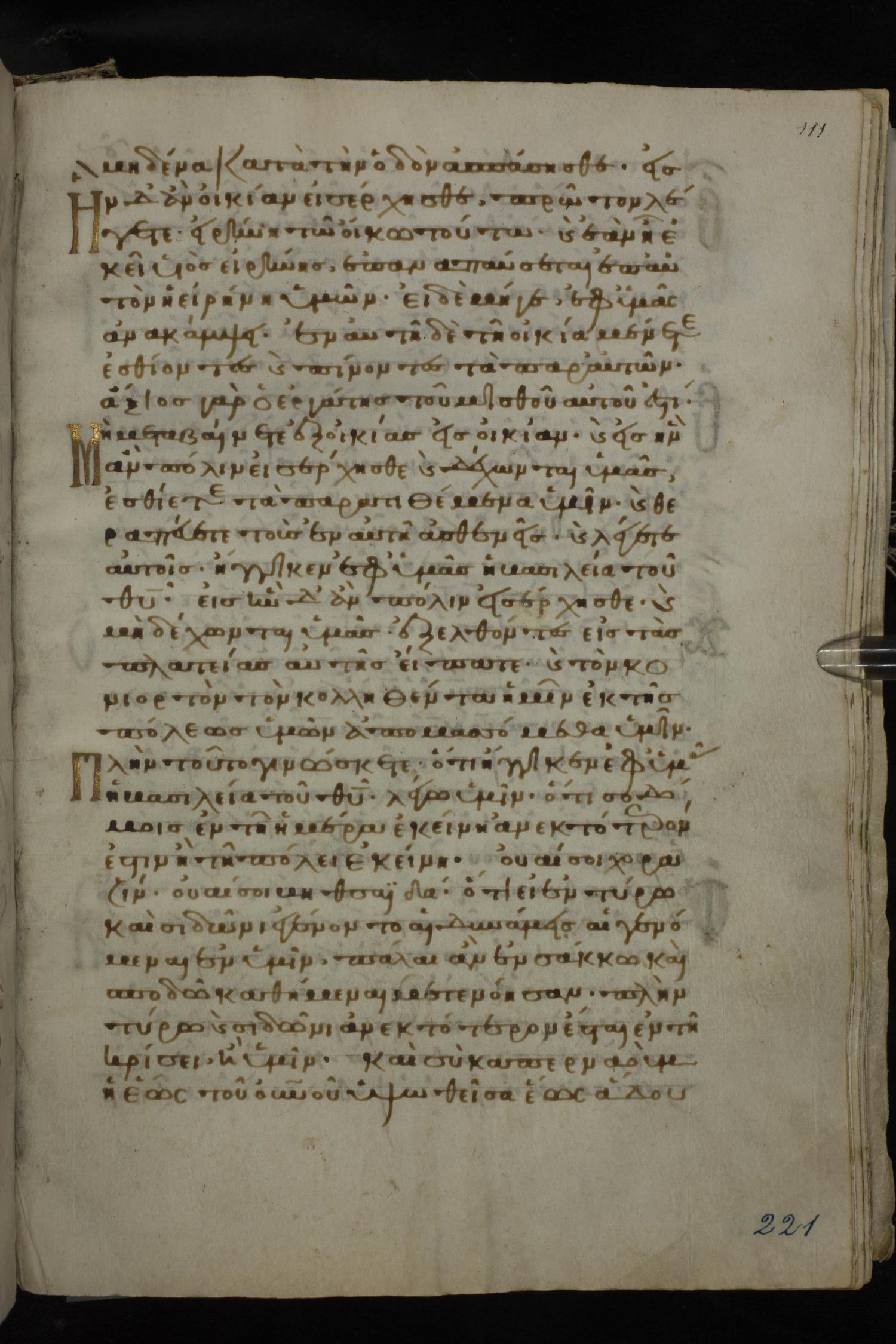 Twelfth century minuscule of the Gospels on parchment; 185 leaves, 1 column, 29 lines per column. Images were taken at the National Library of Greece in Athens.
