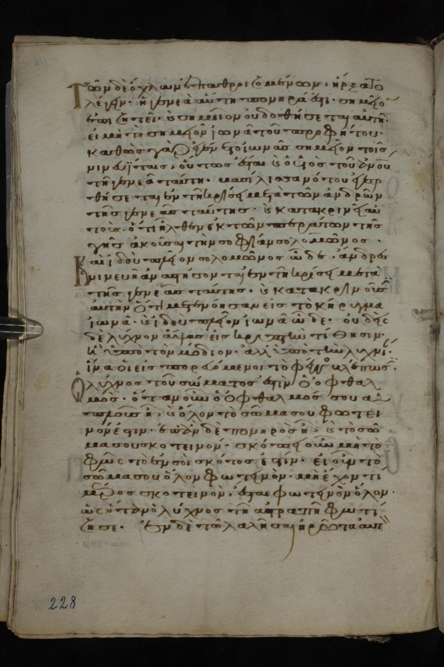 Twelfth century minuscule of the Gospels on parchment; 185 leaves, 1 column, 29 lines per column. Images were taken at the National Library of Greece in Athens.