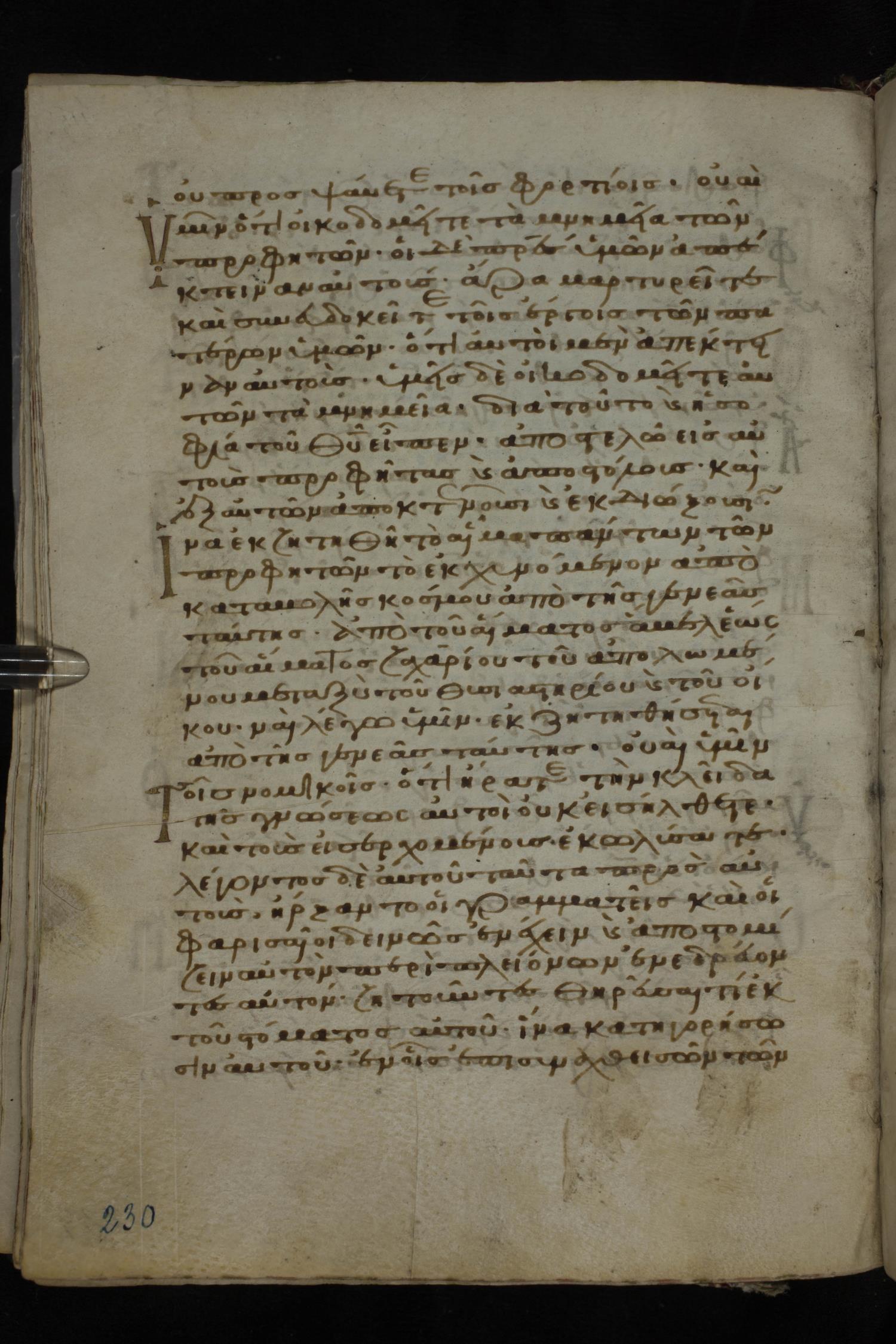 Twelfth century minuscule of the Gospels on parchment; 185 leaves, 1 column, 29 lines per column. Images were taken at the National Library of Greece in Athens.