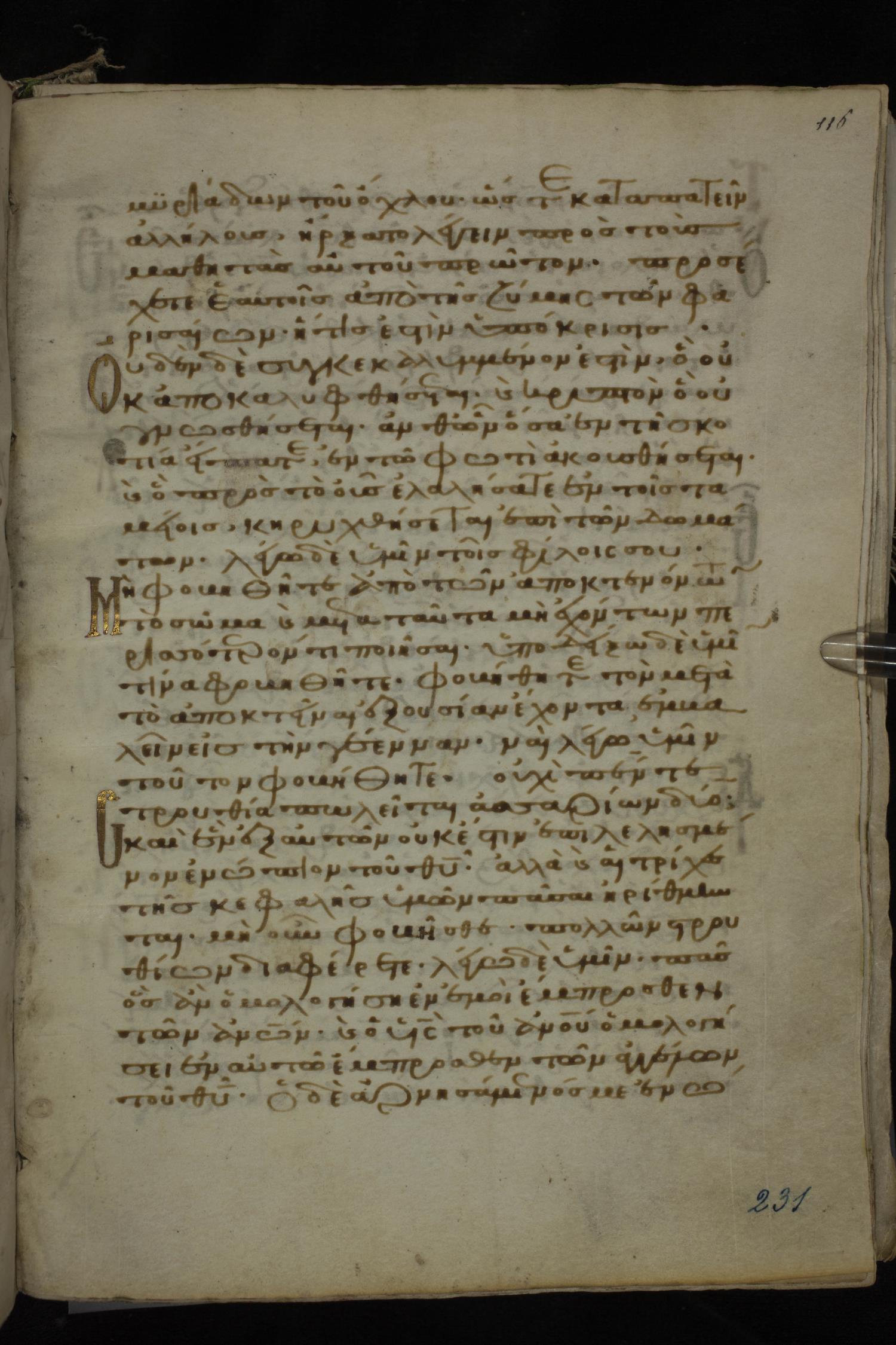 Twelfth century minuscule of the Gospels on parchment; 185 leaves, 1 column, 29 lines per column. Images were taken at the National Library of Greece in Athens.