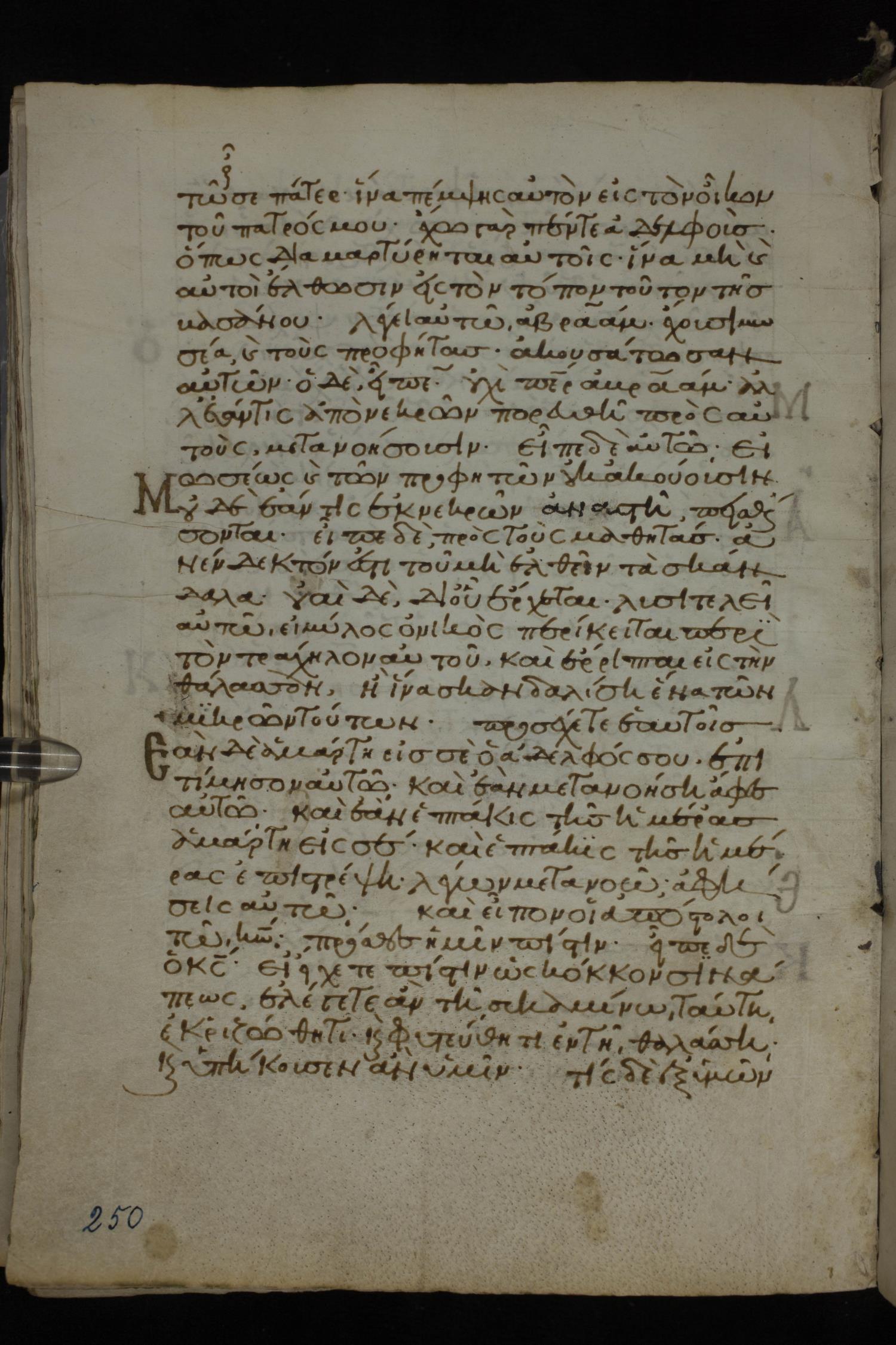 Twelfth century minuscule of the Gospels on parchment; 185 leaves, 1 column, 29 lines per column. Images were taken at the National Library of Greece in Athens.