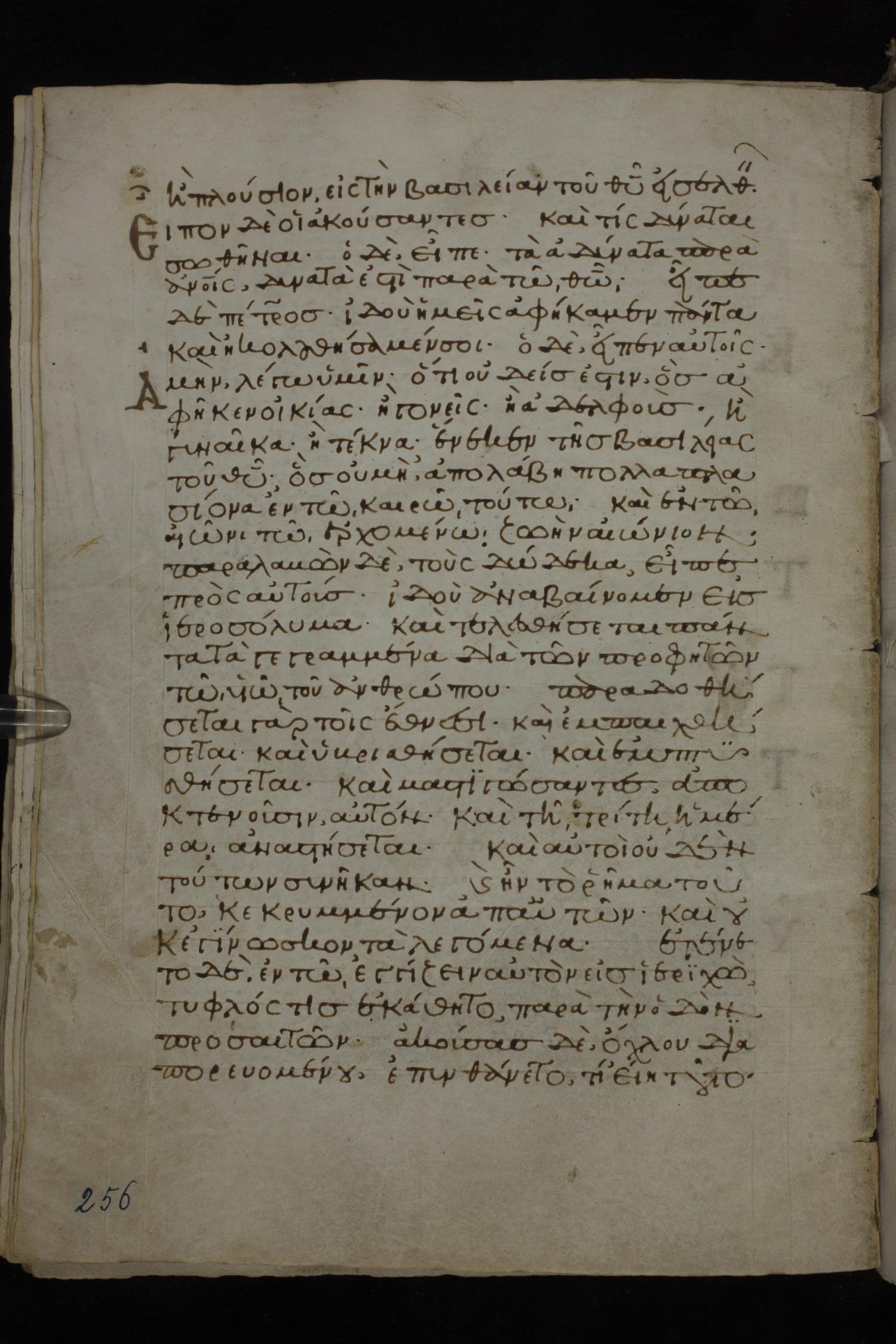 εὐκοπώτερον γάρ ἐστιν κάμηλον διὰ τρήματος βελόνης εἰσελθεῖν ἢ πλούσιον εἰς τὴν βασιλείαν τοῦ θεοῦ εἰσελθεῖν.