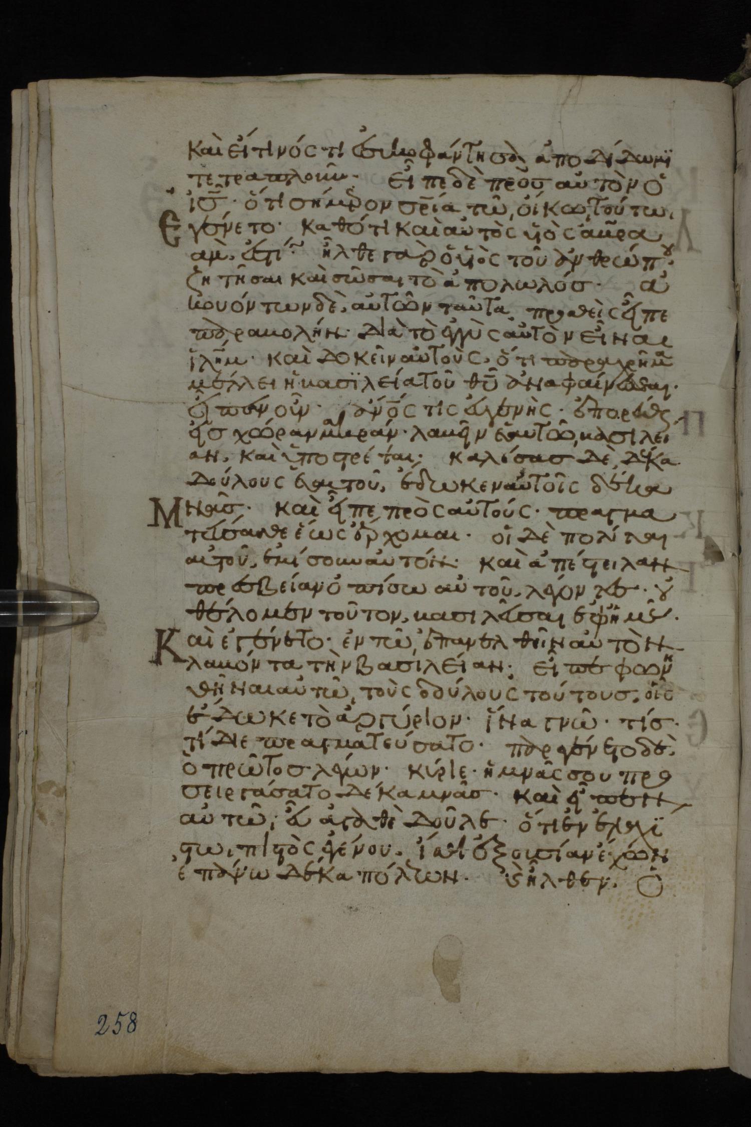 Twelfth century minuscule of the Gospels on parchment; 185 leaves, 1 column, 29 lines per column. Images were taken at the National Library of Greece in Athens.