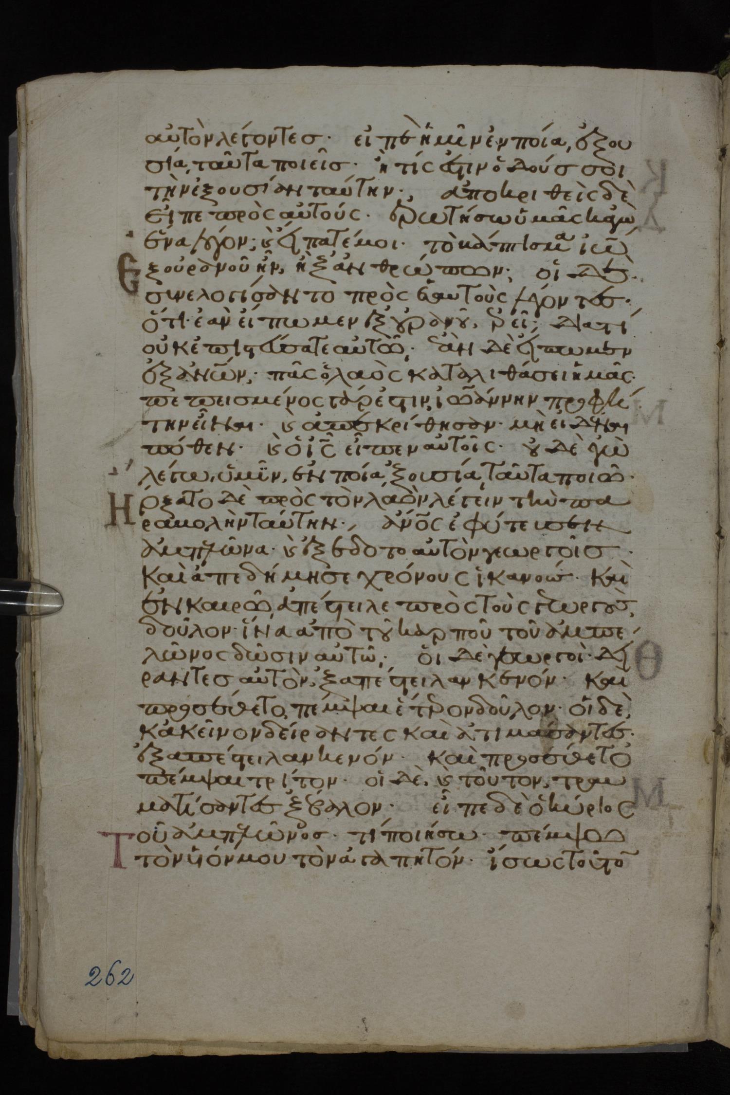 Twelfth century minuscule of the Gospels on parchment; 185 leaves, 1 column, 29 lines per column. Images were taken at the National Library of Greece in Athens.