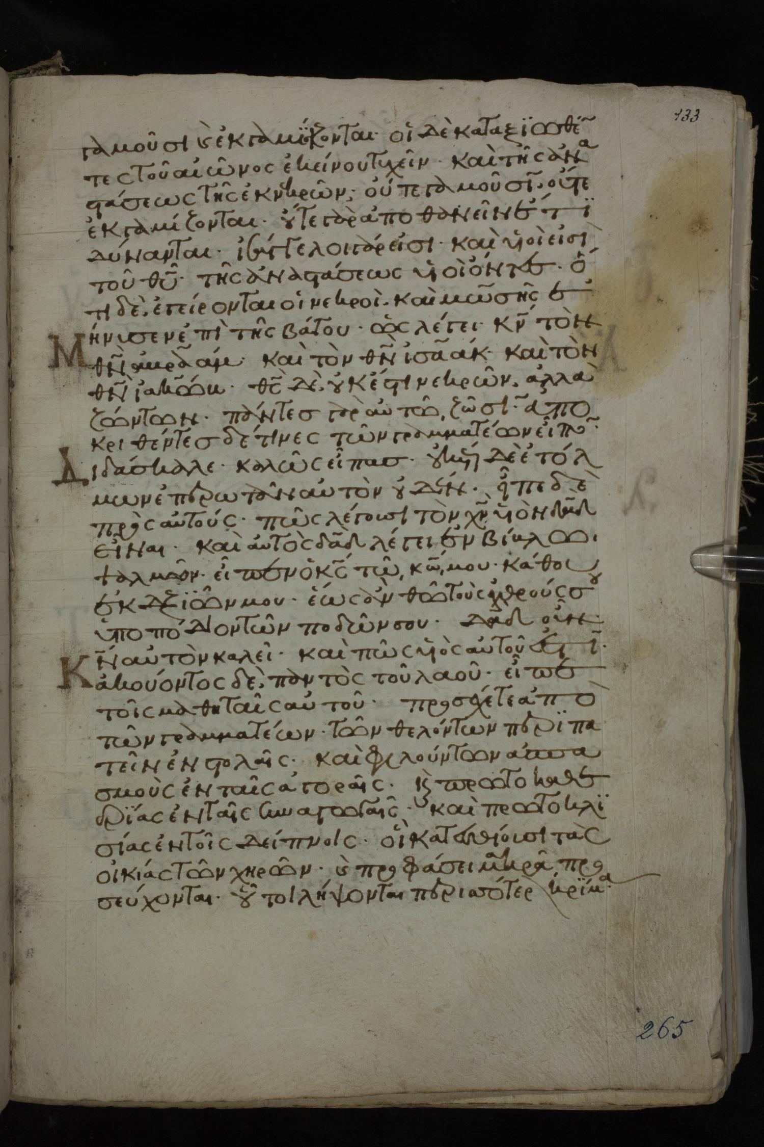 Twelfth century minuscule of the Gospels on parchment; 185 leaves, 1 column, 29 lines per column. Images were taken at the National Library of Greece in Athens.