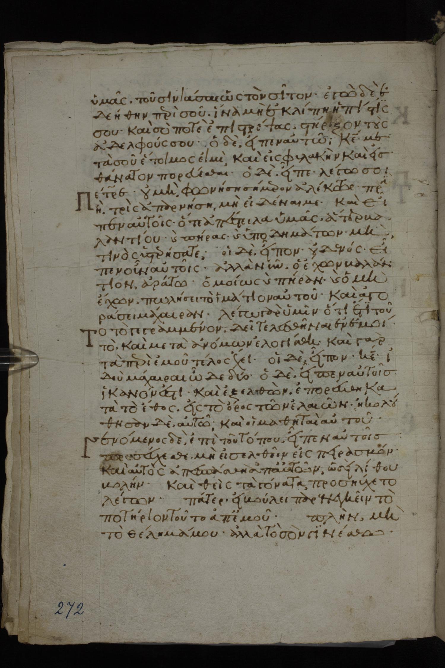Twelfth century minuscule of the Gospels on parchment; 185 leaves, 1 column, 29 lines per column. Images were taken at the National Library of Greece in Athens.