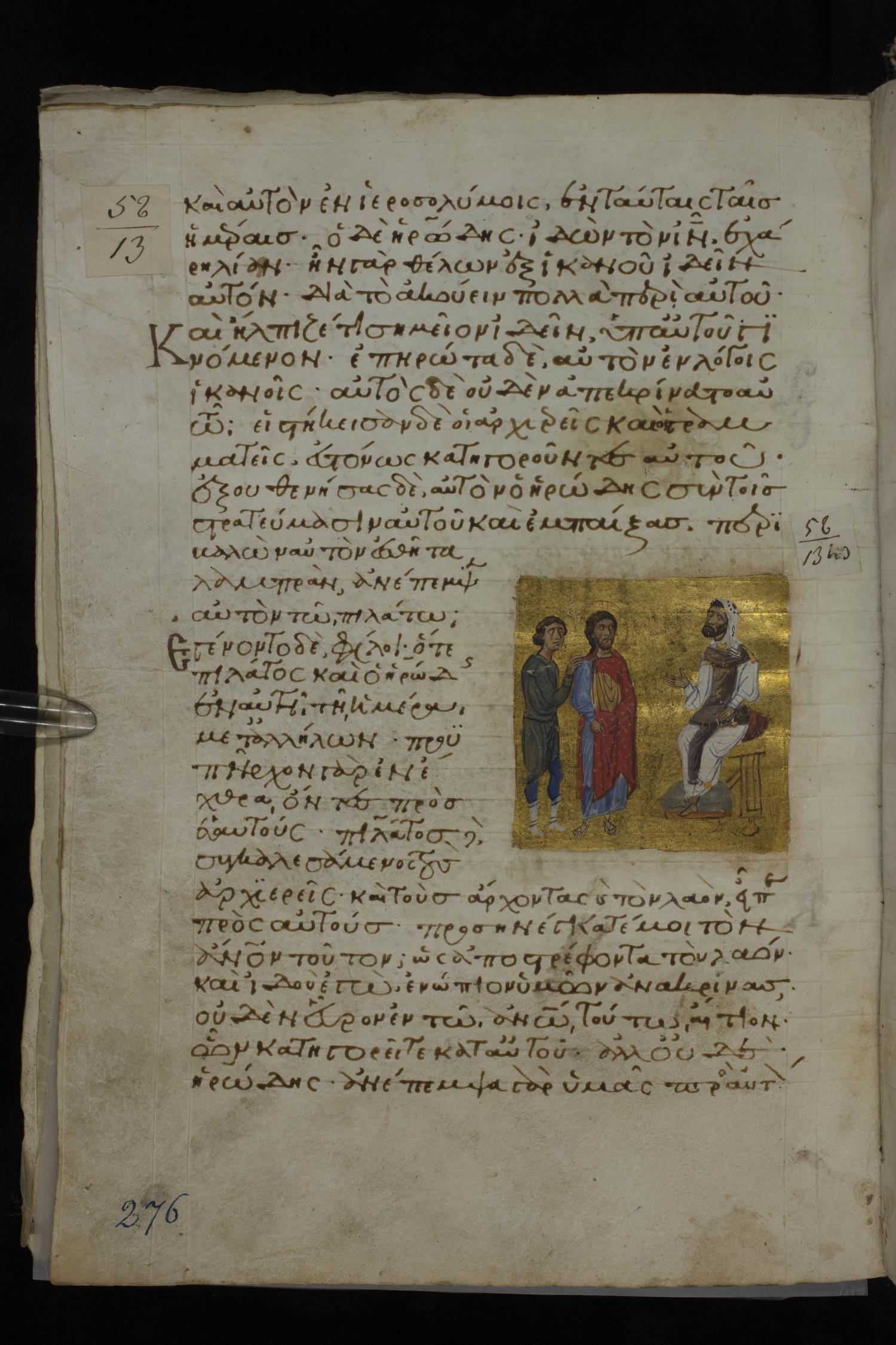 Ἐγένοντο δὲ φίλοι ὅ τε Ἡρῴδης καὶ ὁ Πειλᾶτος / Πιλᾶτος ἐν αὐτῇ τῇ ἡμέρᾳ μετ´ ἀλλήλων· προϋπῆρχον γὰρ ἐν ἔχθρᾳ ὄντες πρὸς αὑτούς.