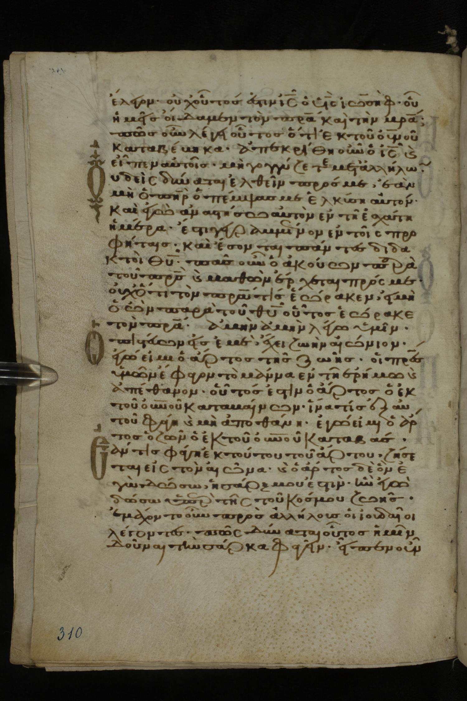 Twelfth century minuscule of the Gospels on parchment; 185 leaves, 1 column, 29 lines per column. Images were taken at the National Library of Greece in Athens.