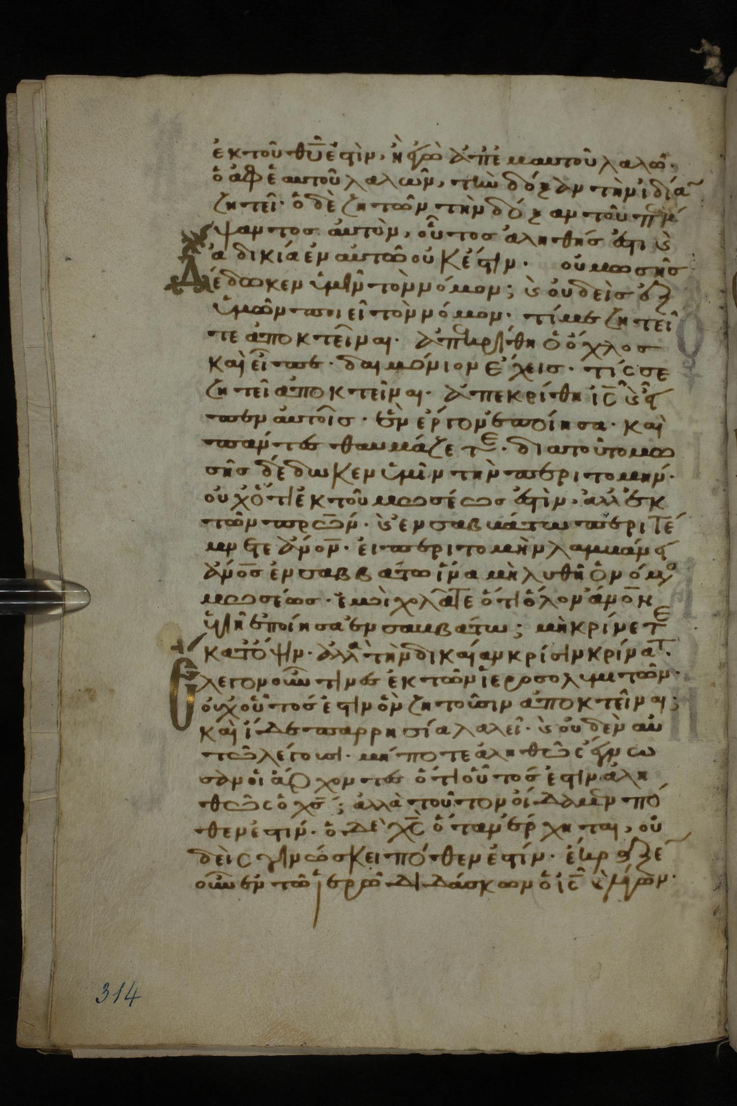 Twelfth century minuscule of the Gospels on parchment; 185 leaves, 1 column, 29 lines per column. Images were taken at the National Library of Greece in Athens.