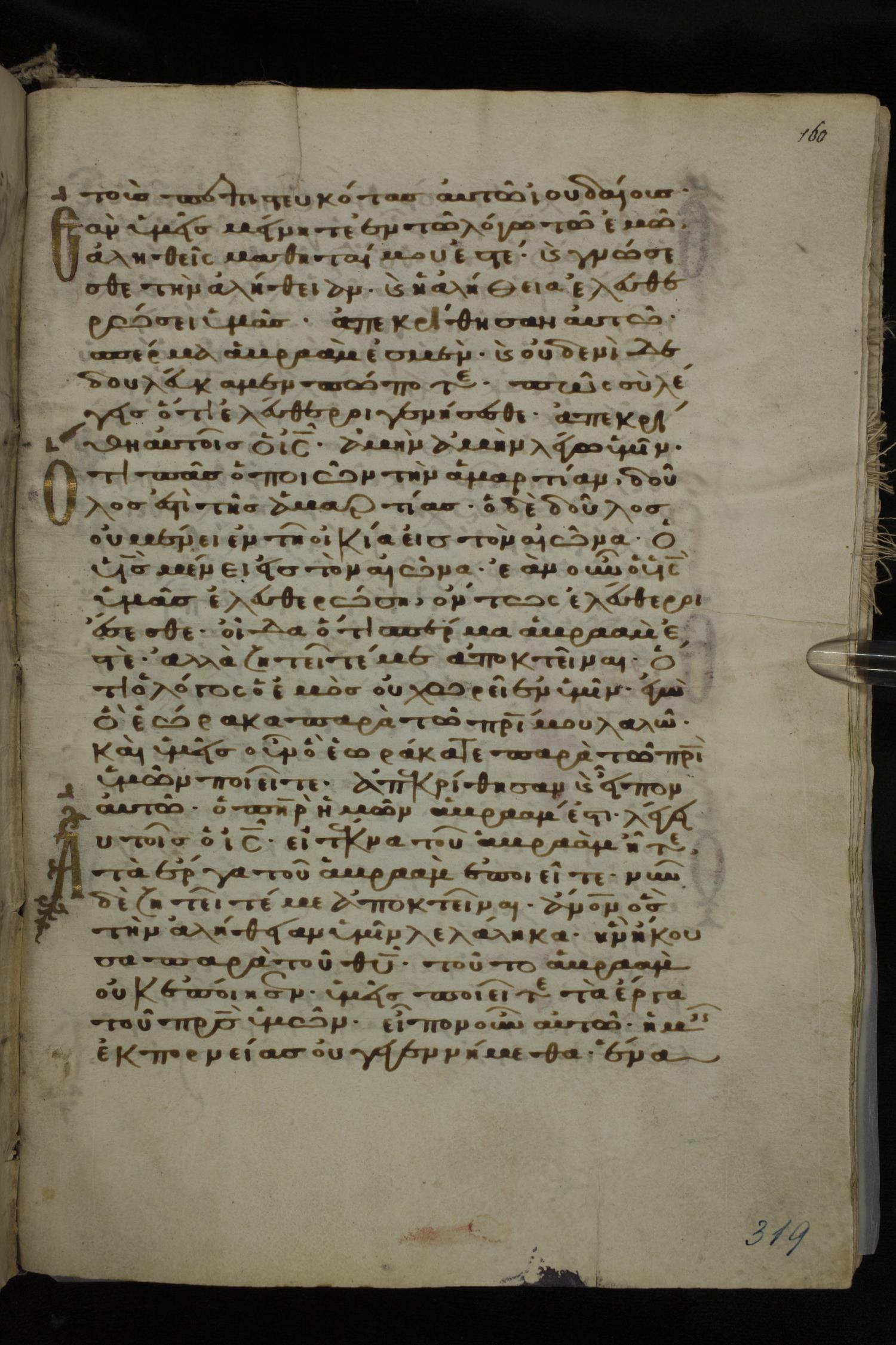 Twelfth century minuscule of the Gospels on parchment; 185 leaves, 1 column, 29 lines per column. Images were taken at the National Library of Greece in Athens.