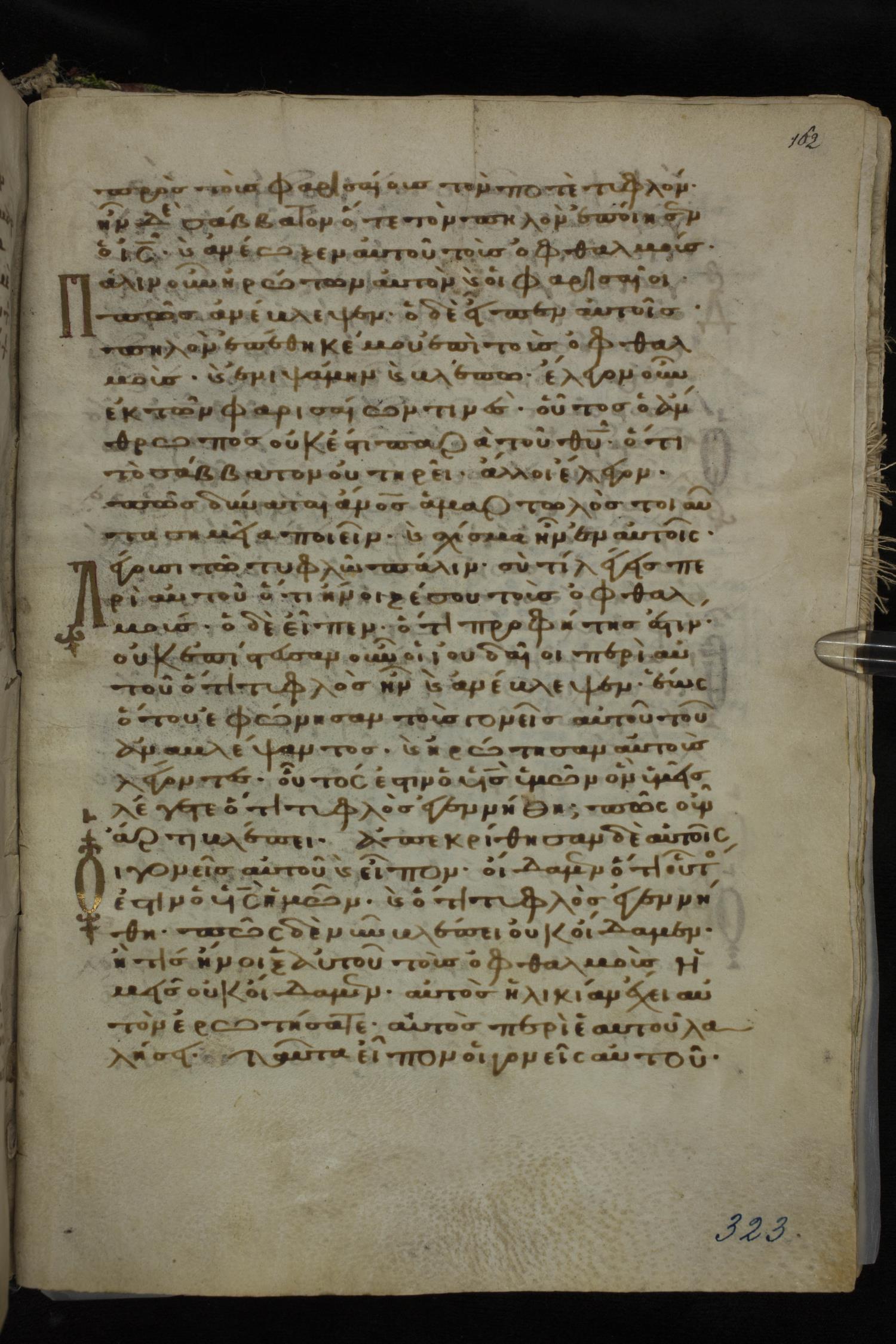 Twelfth century minuscule of the Gospels on parchment; 185 leaves, 1 column, 29 lines per column. Images were taken at the National Library of Greece in Athens.