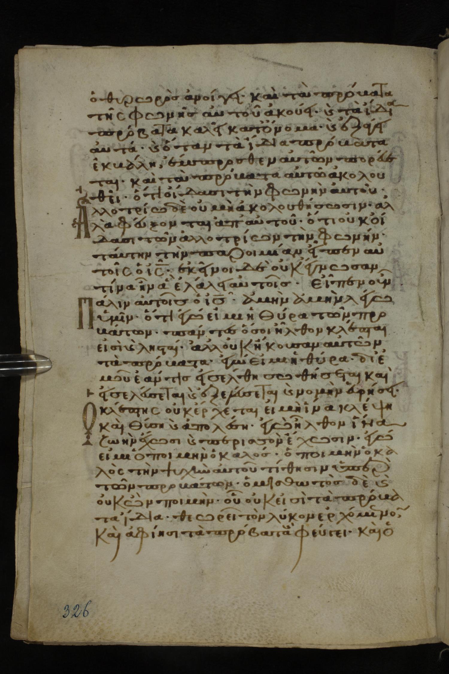 Twelfth century minuscule of the Gospels on parchment; 185 leaves, 1 column, 29 lines per column. Images were taken at the National Library of Greece in Athens.