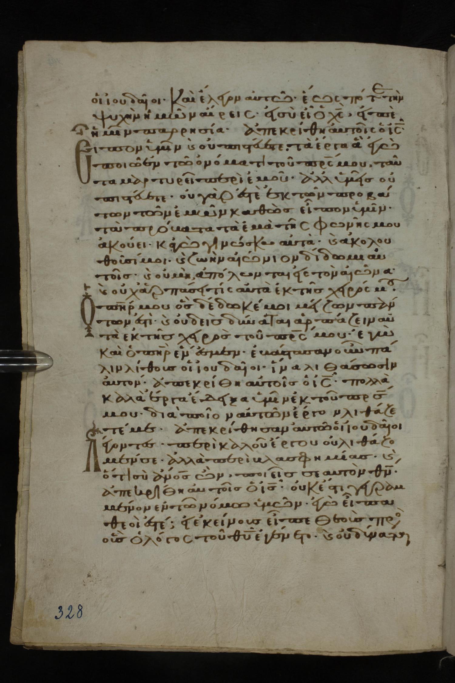 Twelfth century minuscule of the Gospels on parchment; 185 leaves, 1 column, 29 lines per column. Images were taken at the National Library of Greece in Athens.