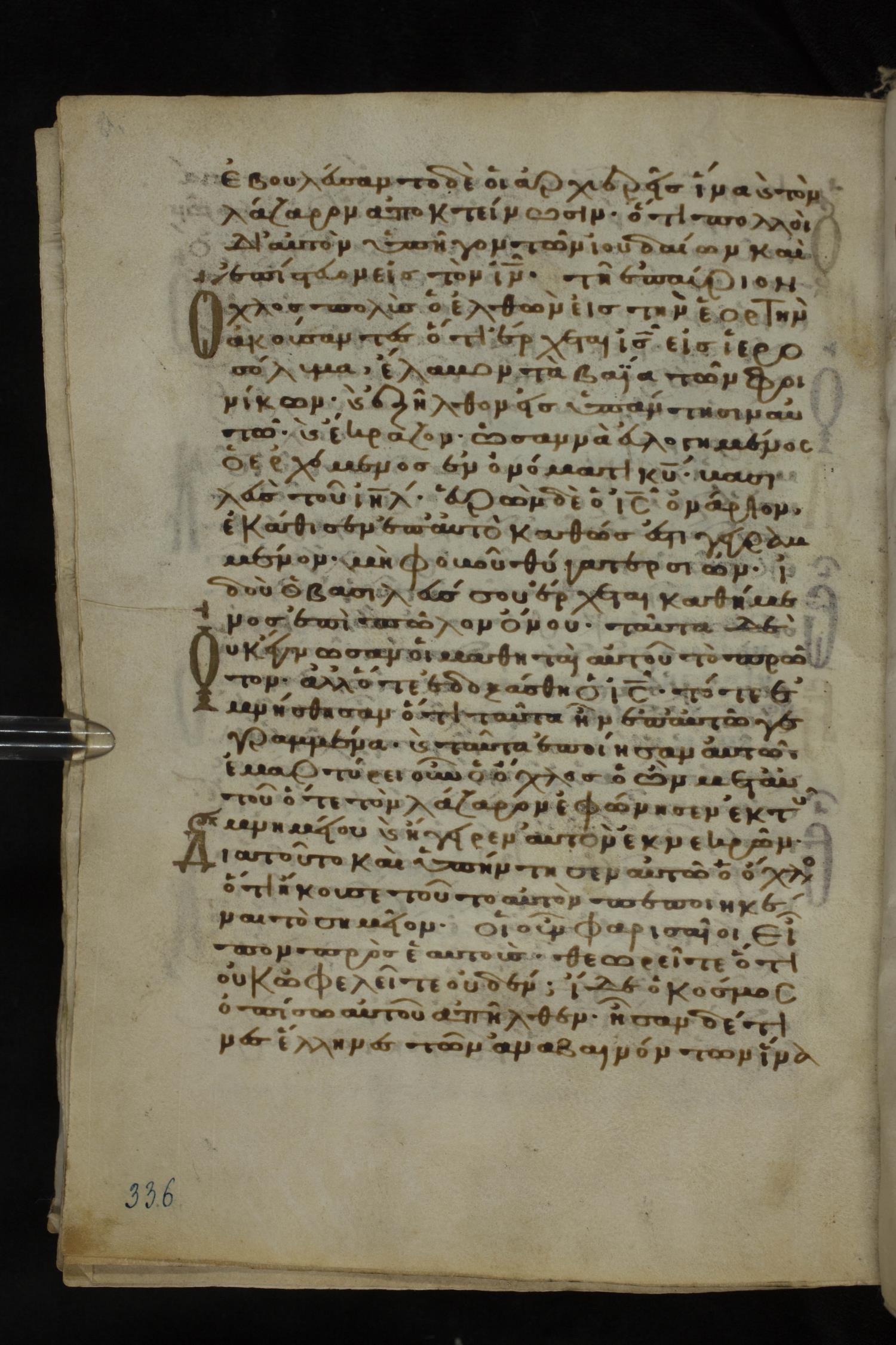 Twelfth century minuscule of the Gospels on parchment; 185 leaves, 1 column, 29 lines per column. Images were taken at the National Library of Greece in Athens.