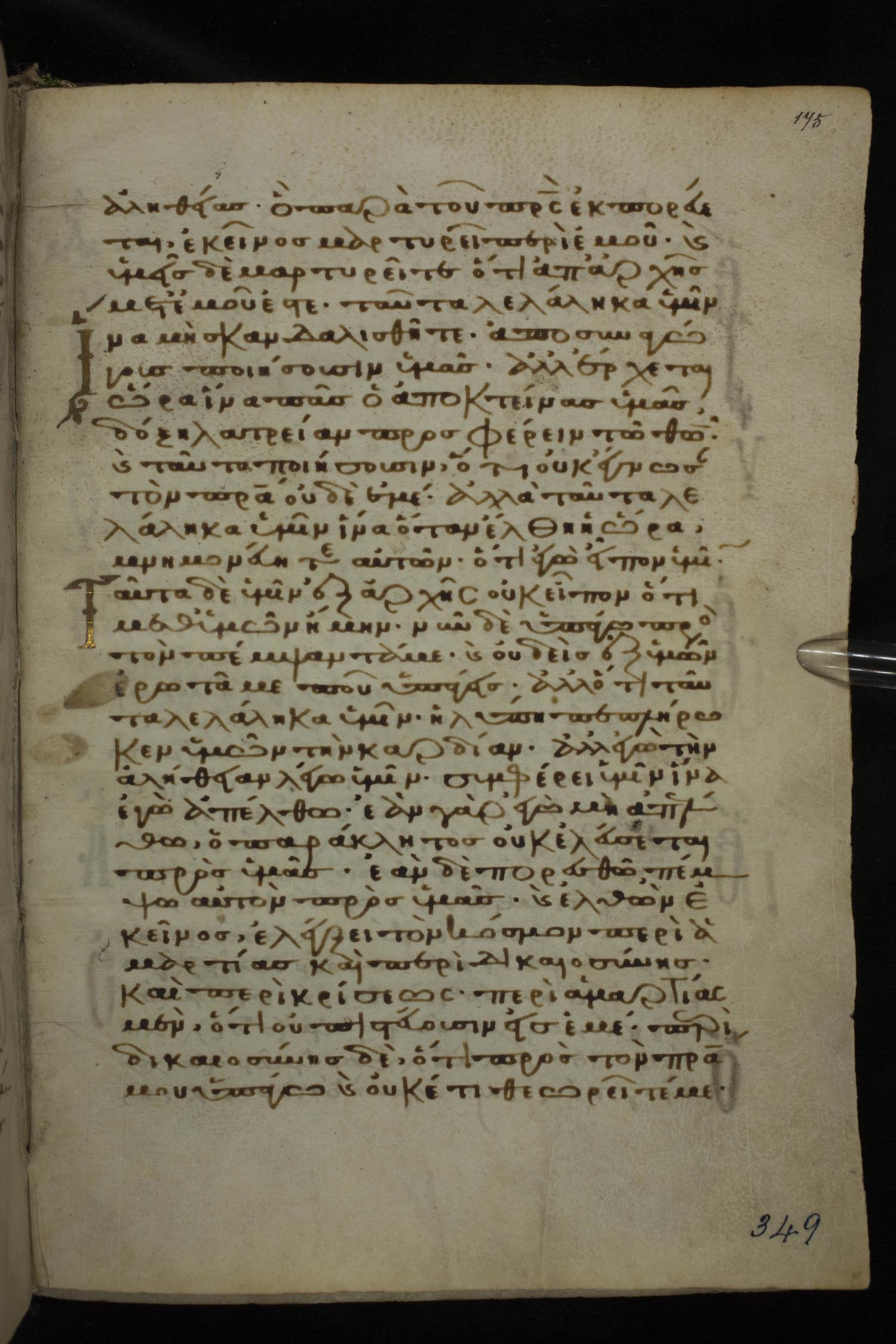 Twelfth century minuscule of the Gospels on parchment; 185 leaves, 1 column, 29 lines per column. Images were taken at the National Library of Greece in Athens.