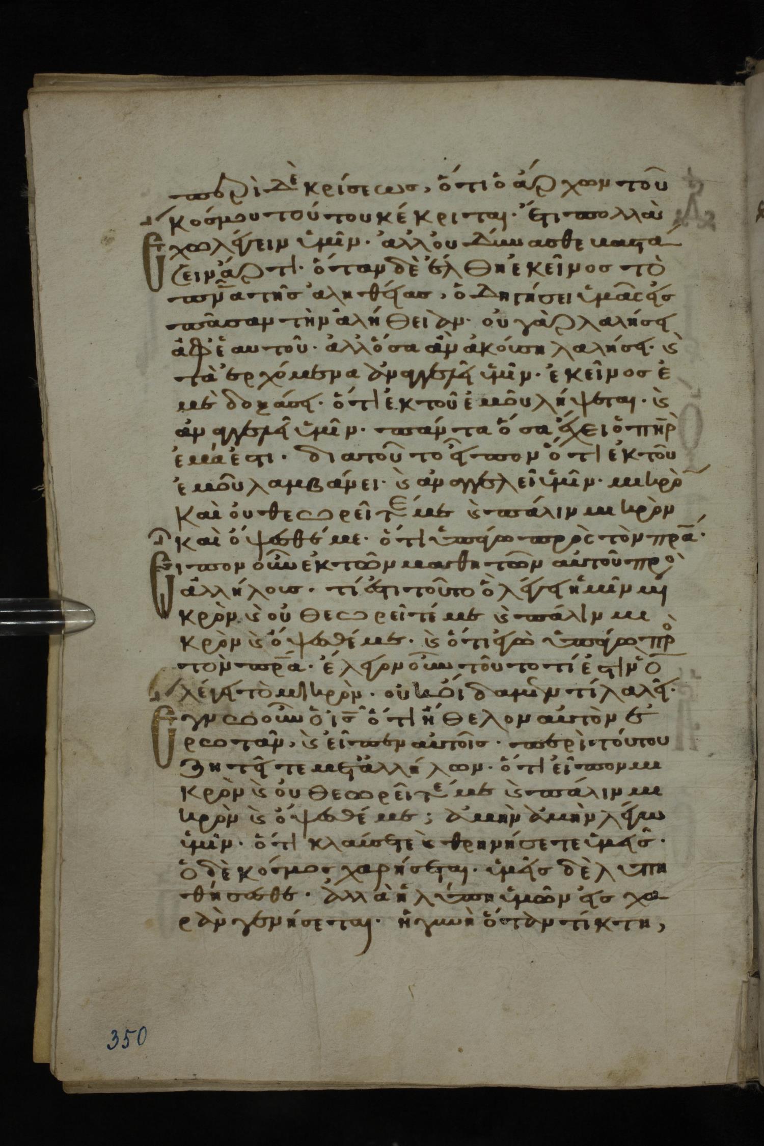 Twelfth century minuscule of the Gospels on parchment; 185 leaves, 1 column, 29 lines per column. Images were taken at the National Library of Greece in Athens.