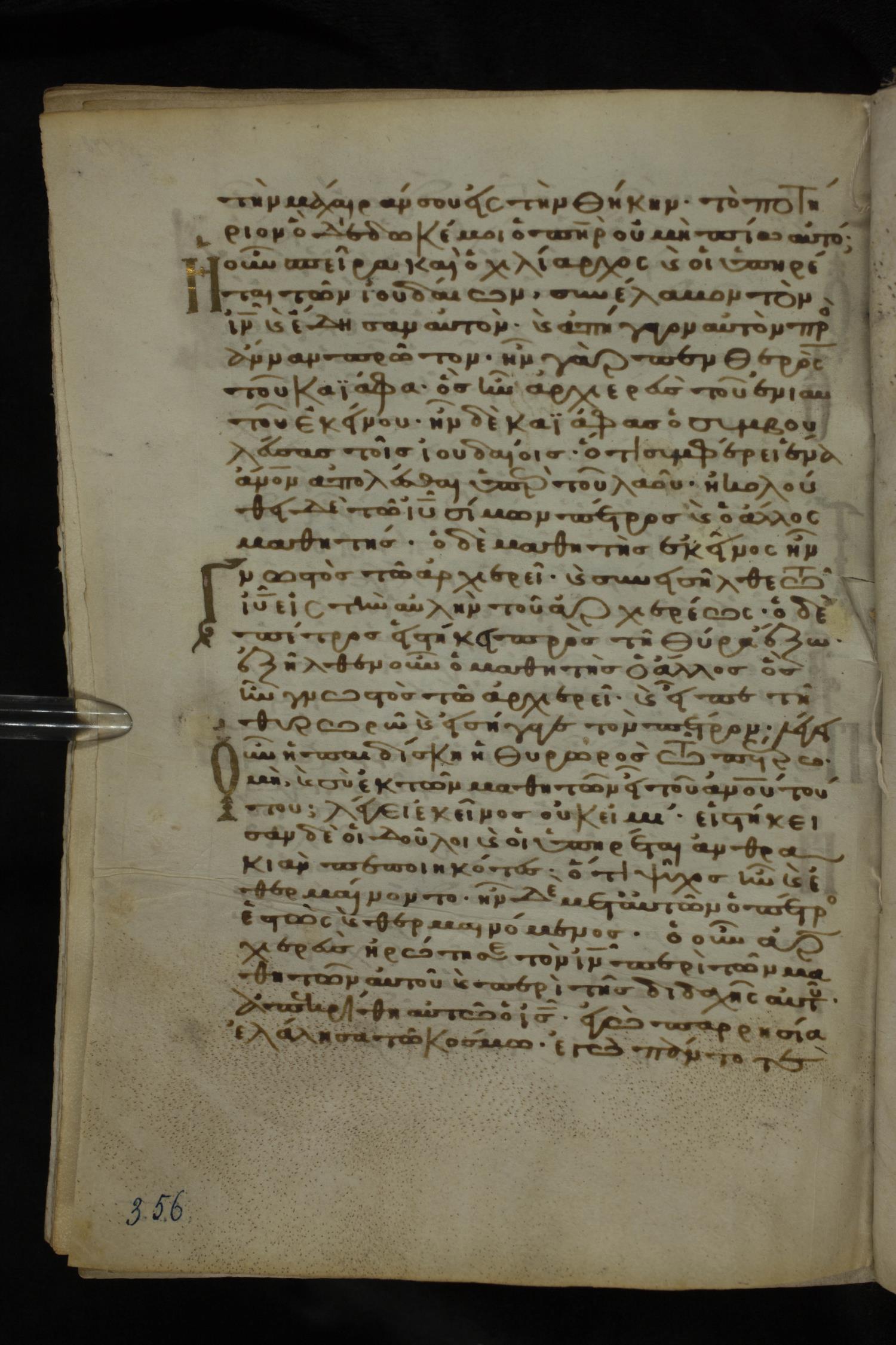 Twelfth century minuscule of the Gospels on parchment; 185 leaves, 1 column, 29 lines per column. Images were taken at the National Library of Greece in Athens.