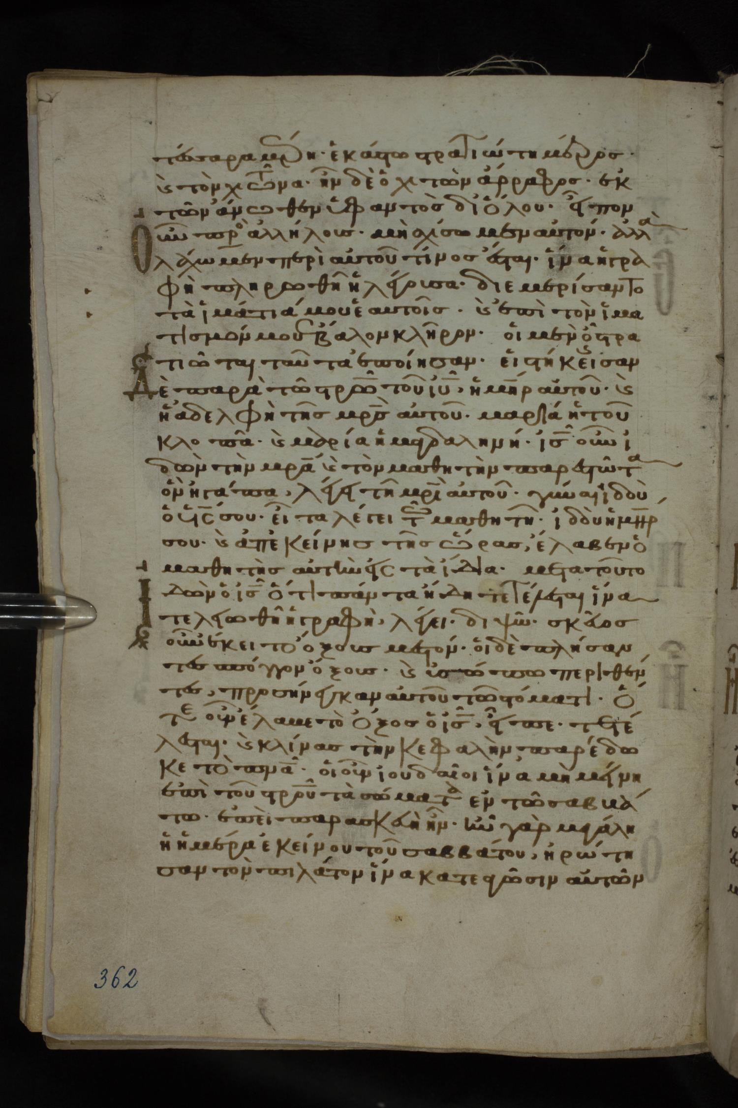 Twelfth century minuscule of the Gospels on parchment; 185 leaves, 1 column, 29 lines per column. Images were taken at the National Library of Greece in Athens.
