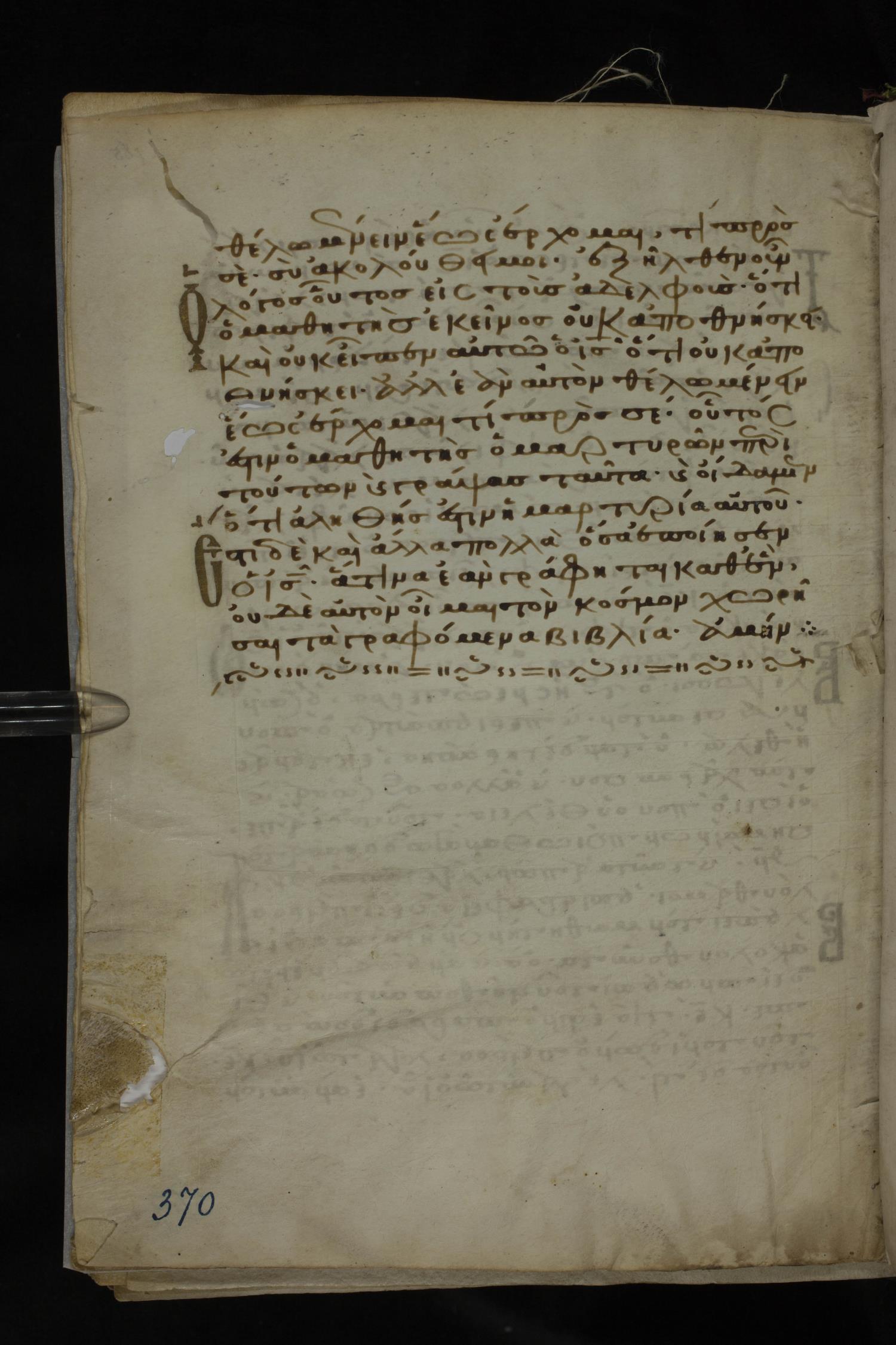 Twelfth century minuscule of the Gospels on parchment; 185 leaves, 1 column, 29 lines per column. Images were taken at the National Library of Greece in Athens.