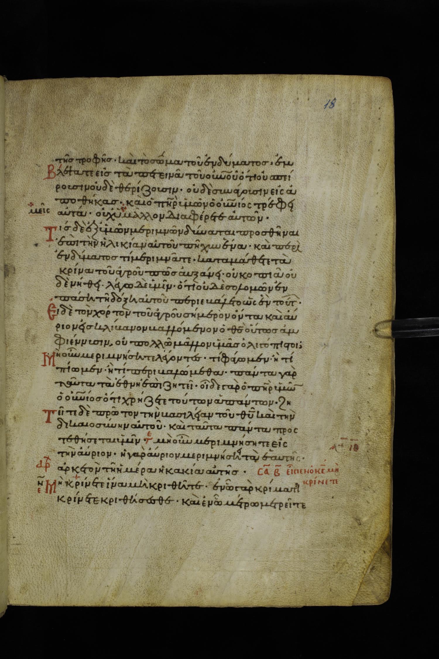 Twelfth century minuscule of the Gospels on parchment; 195 leaves, 1 column, 25 lines per column. Images were taken at the National Library of Greece in Athens.