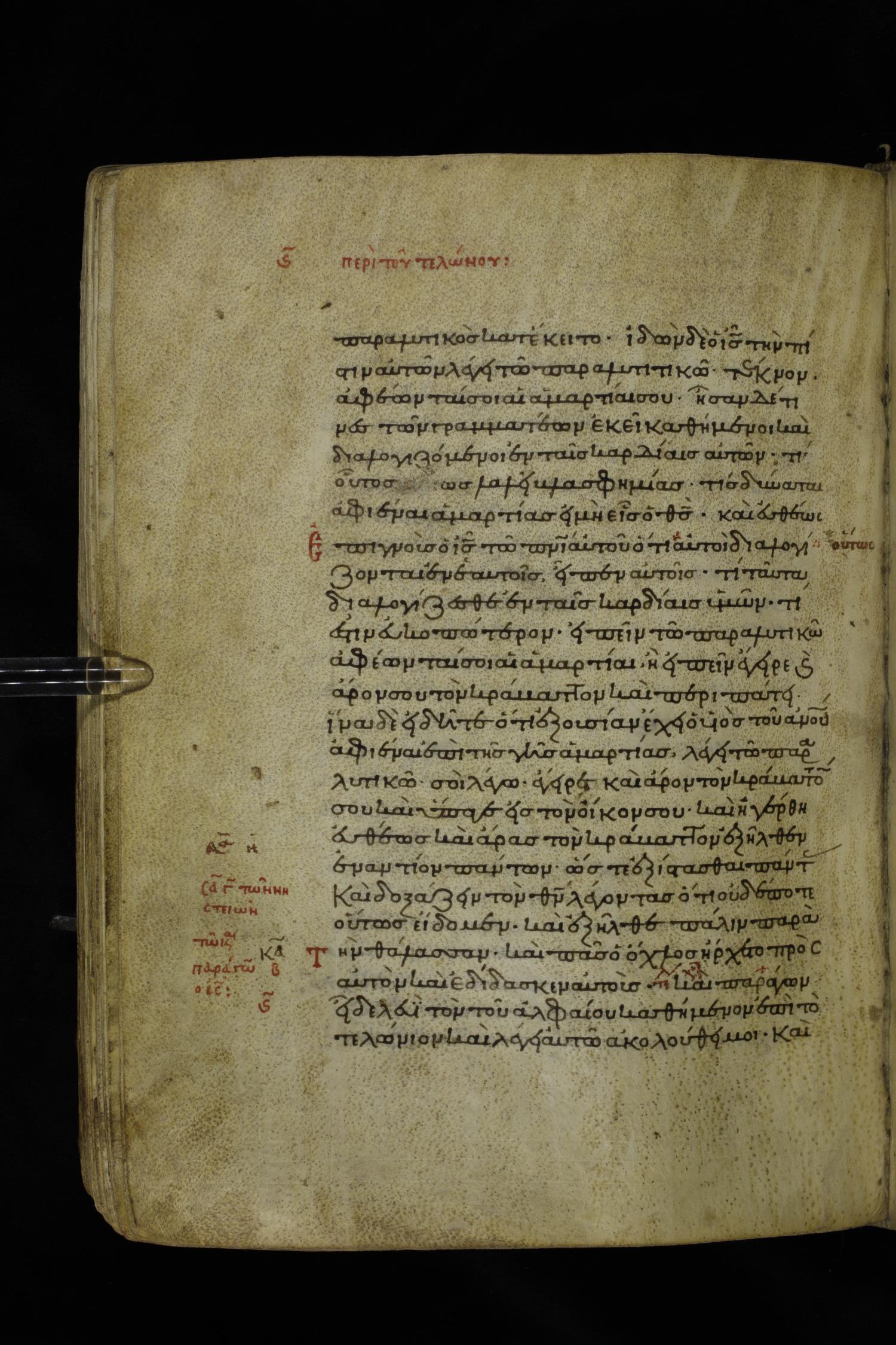 Twelfth century minuscule of the Gospels on parchment; 195 leaves, 1 column, 25 lines per column. Images were taken at the National Library of Greece in Athens.