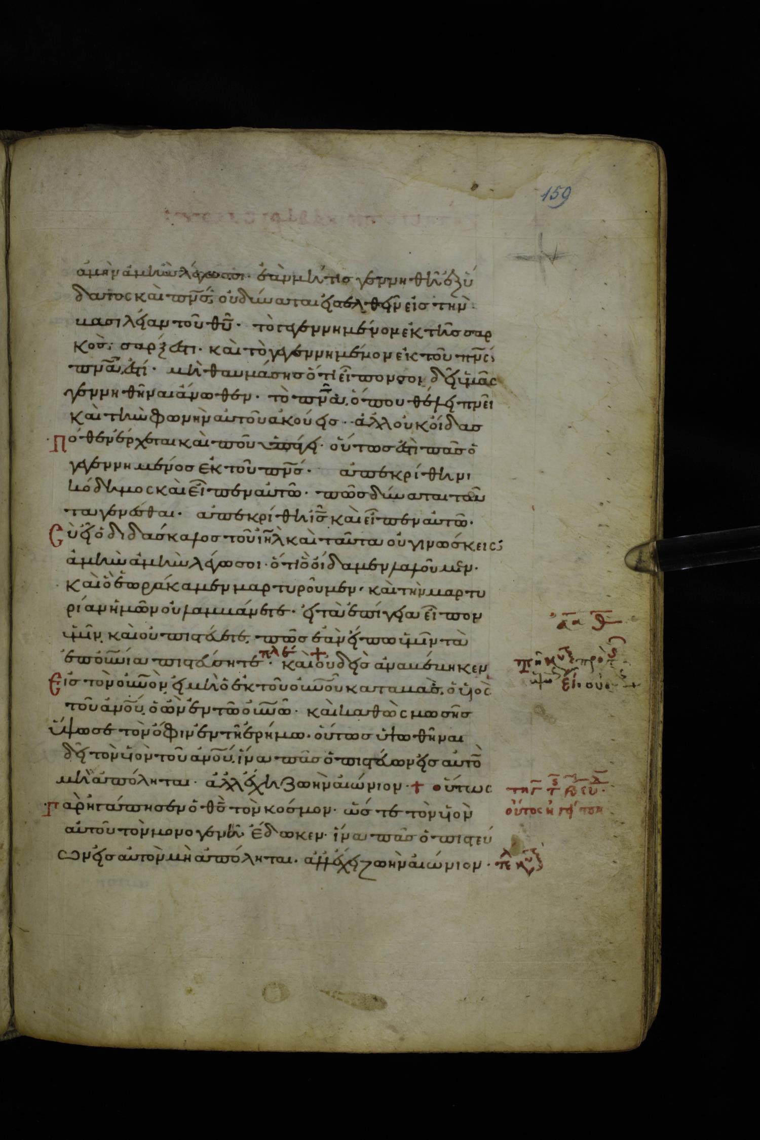 Twelfth century minuscule of the Gospels on parchment; 195 leaves, 1 column, 25 lines per column. Images were taken at the National Library of Greece in Athens.