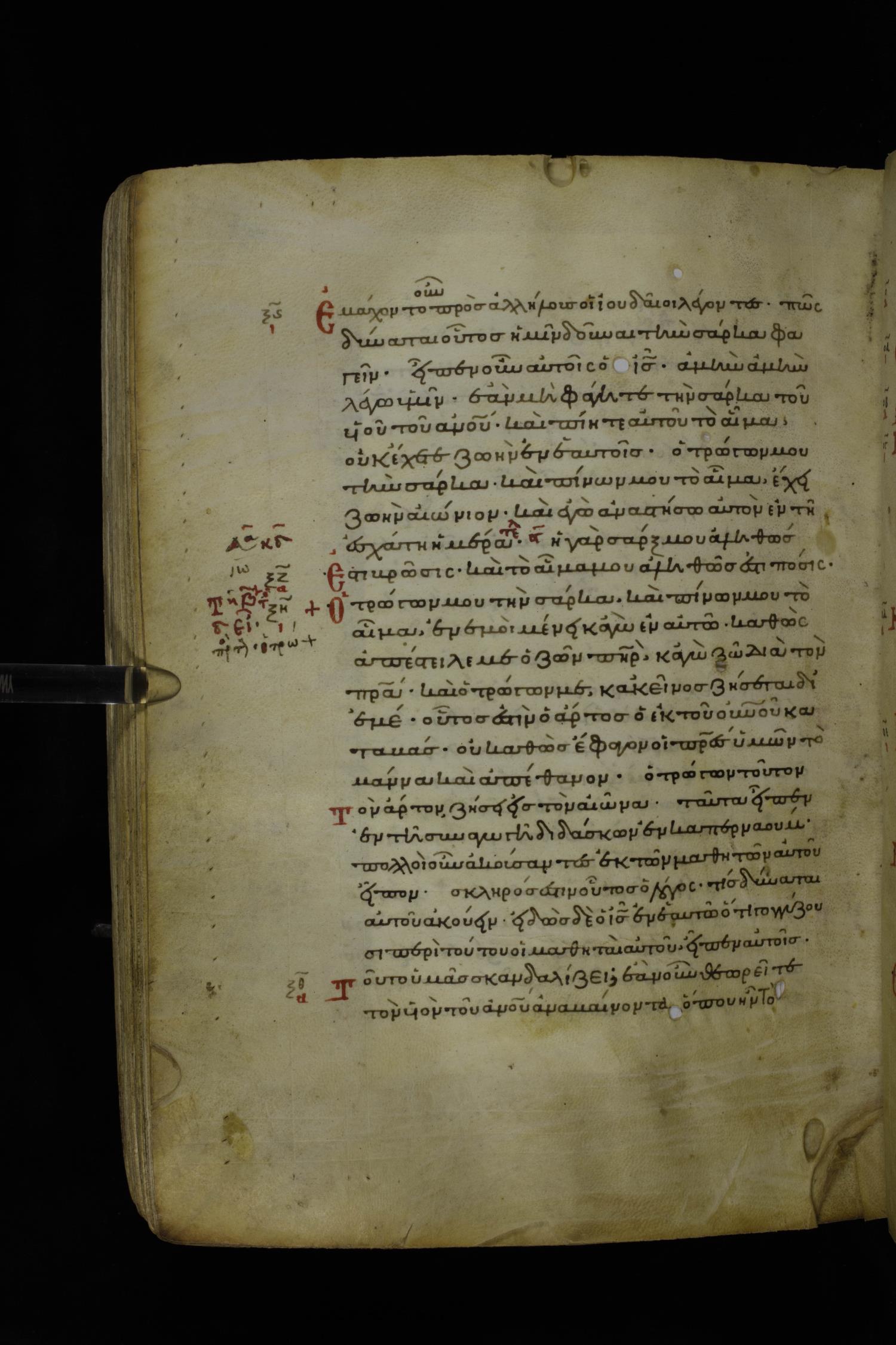 Twelfth century minuscule of the Gospels on parchment; 195 leaves, 1 column, 25 lines per column. Images were taken at the National Library of Greece in Athens.