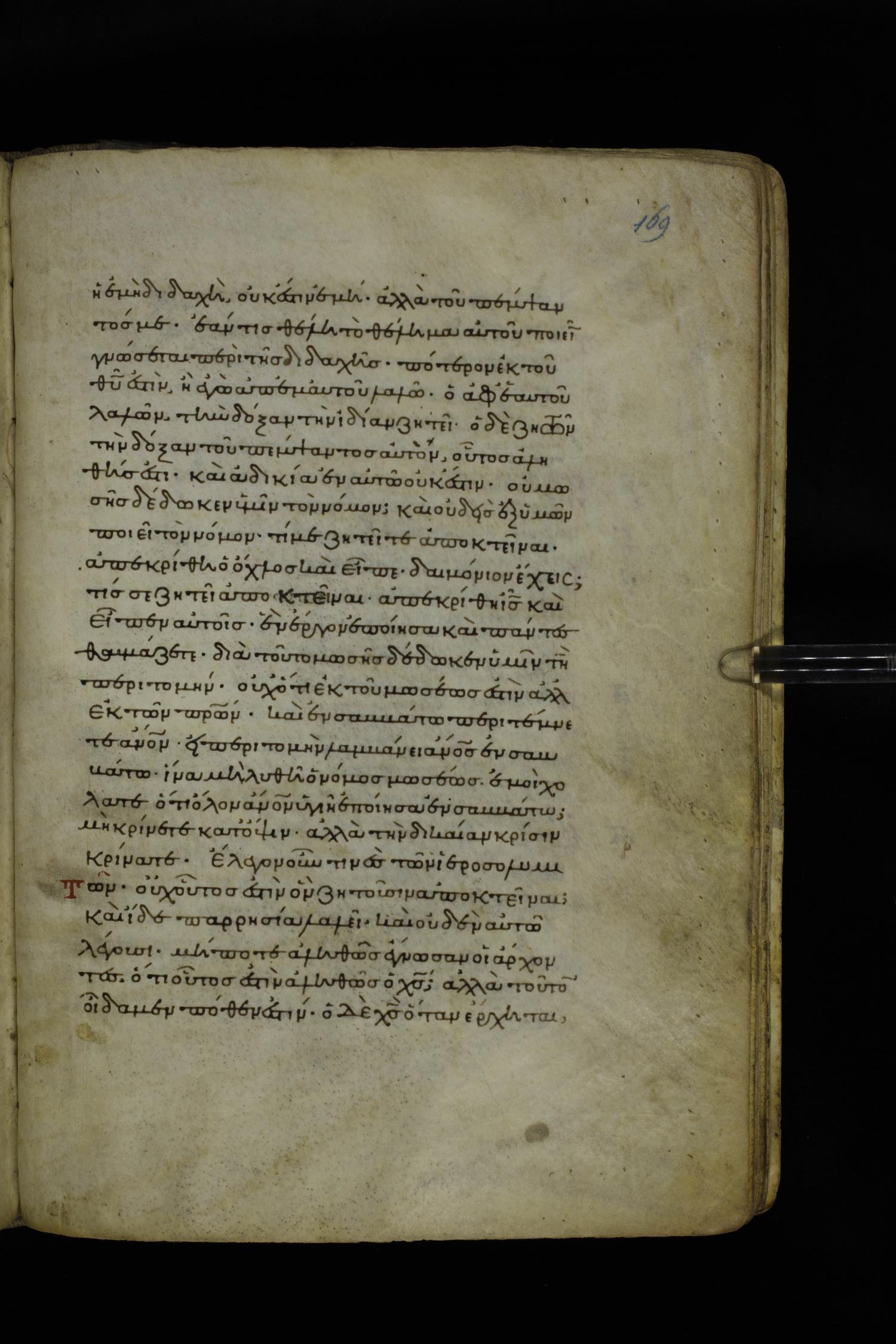 Twelfth century minuscule of the Gospels on parchment; 195 leaves, 1 column, 25 lines per column. Images were taken at the National Library of Greece in Athens.