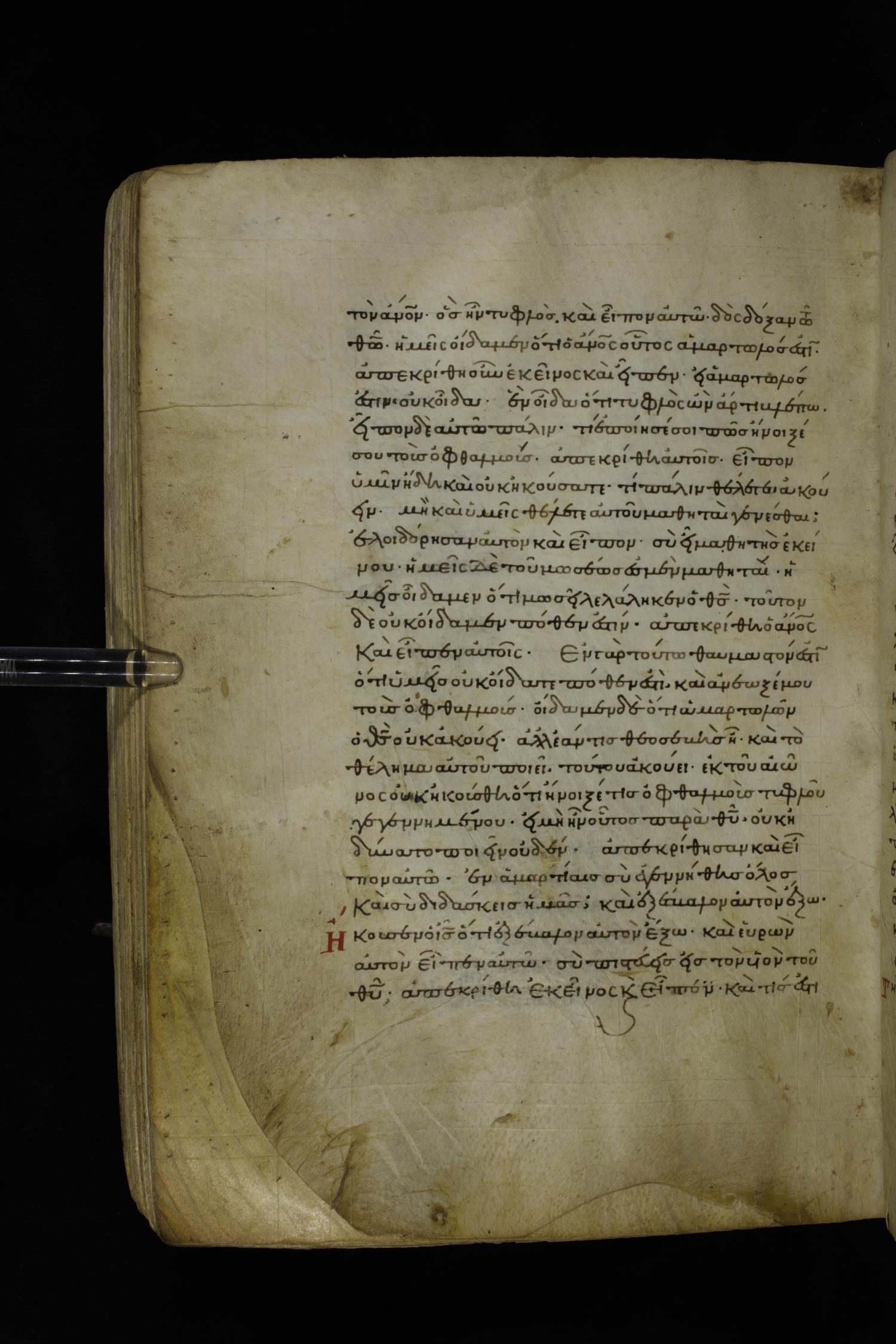 Twelfth century minuscule of the Gospels on parchment; 195 leaves, 1 column, 25 lines per column. Images were taken at the National Library of Greece in Athens.