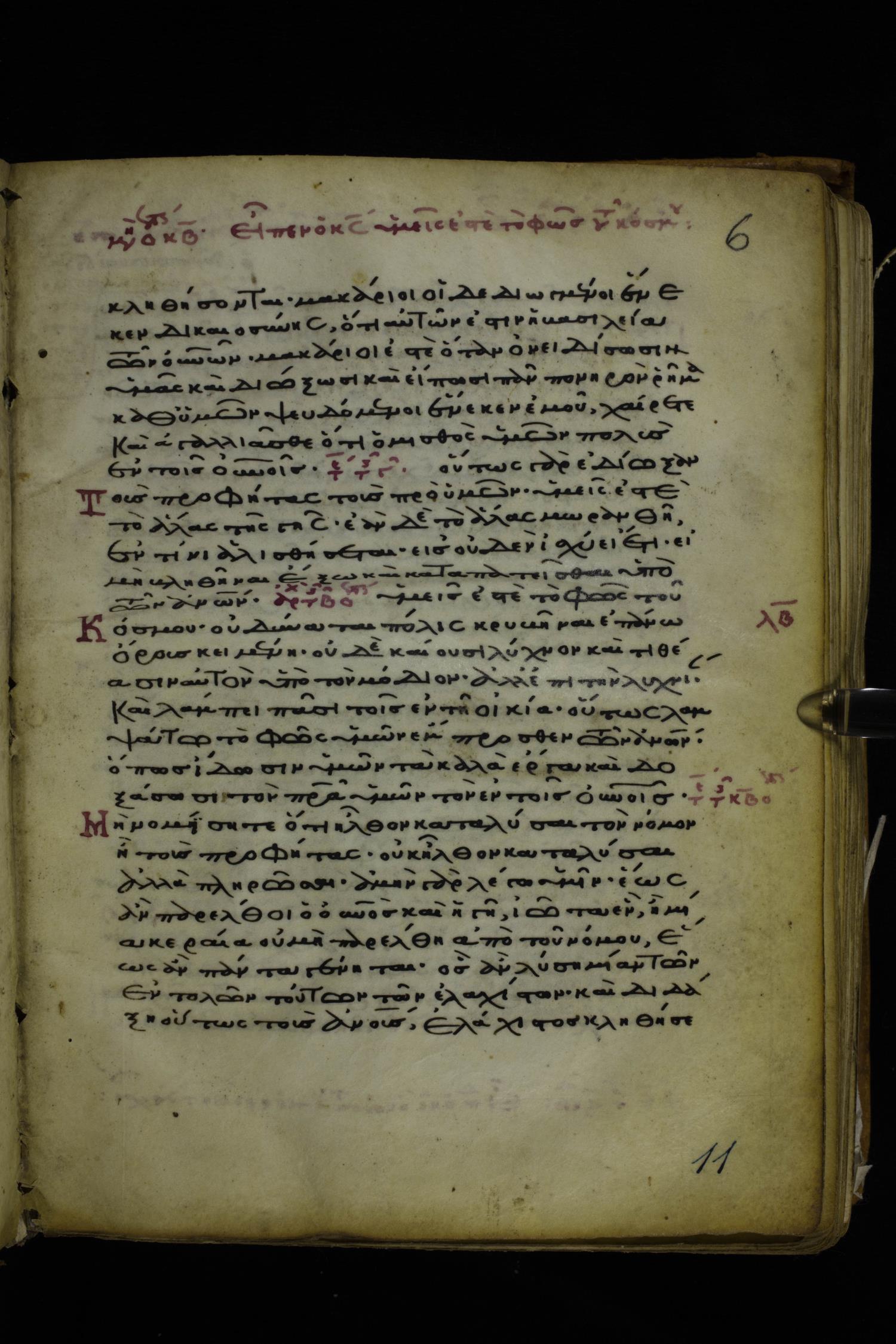 Twelfth or thirteenth century minuscule of the Gospels on parchment; 171 leaves, 1 column, 26-28 lines per column. Images were taken at the National Library of Greece in Athens.
